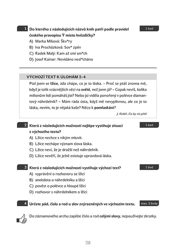 Důležitou součástí titulu je záznamový arch a pokyny pro jeho správné vyplnění. Pokud si je žáci nastudují dopředu, získají cenné minuty navíc, které se jim při řešení testu jistě budou hodit.