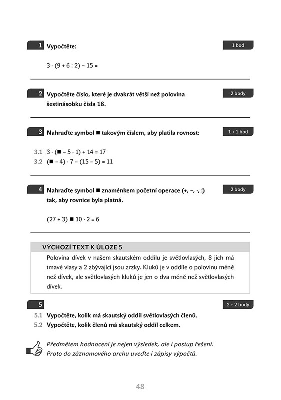 Důležitou součástí titulu je záznamový arch a pokyny pro jeho správné vyplnění. Pokud si je žáci nastudují dopředu, získají cenné minuty navíc, které se jim při řešení testu jistě budou hodit.