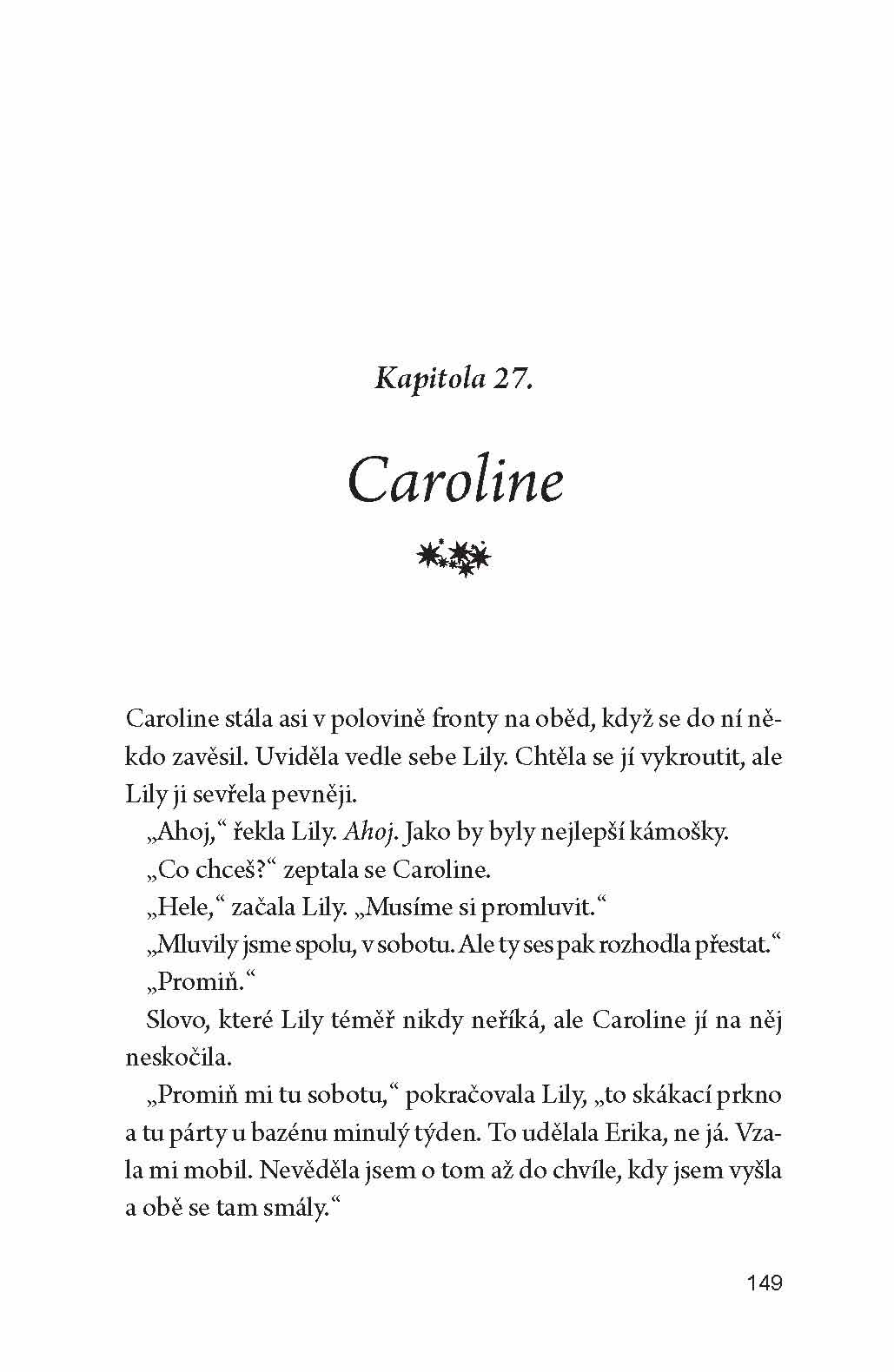 Tentokrát přijde Aria za Caroline Masonovou, kterou spolužačky šikanují. Aria hned pozná, že Caroline něco trápí. Vůdkyní kruté dívčí party je Lily Pierceová, bývalá nejlepší kamarádka Caroline. Ale Aria vidí, že Lily taky něco trápí! Co si dívky udělaly? A dokáže Aria pomoci zoufalé Caroline?