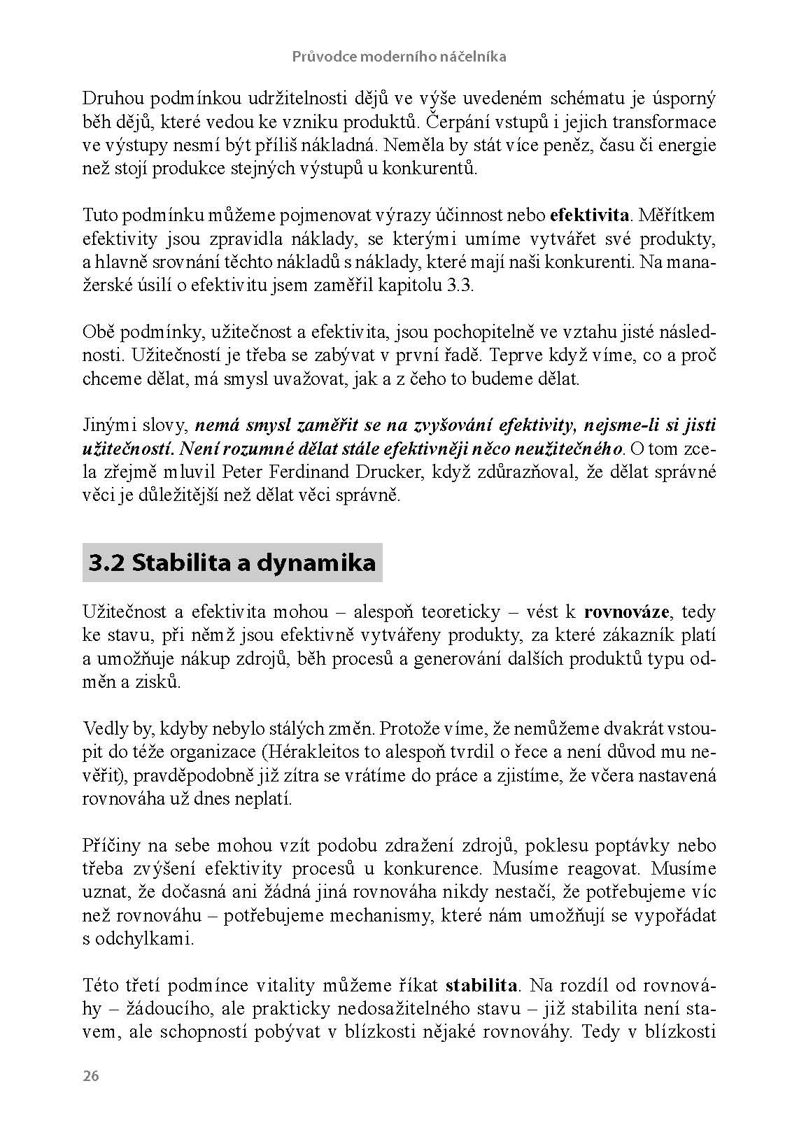Průvodce moderního náčelníka je především o orientaci – jejím cílem je přivést ty, kteří působí v manažerských pozicích k pochopení podstaty managementu a formulaci priorit. Víme, že jen malá část příčin způsobuje velkou část důsledků. Některé činy a příčiny dokáží působit mnohem větší změny, než ty ostatní. Umět tyto mocné nástroje změny poznat, je zcela klíčovým uměním lídra. Kniha Průvodce moderního náčelníka vede ke koncentraci na to podstatné a zaměřuje se na léty prověřené zdroje úspěchu – dobrý přehled o cílech, odstup od detailů, myšlení v souvislostech a také na pochopení a ovlivňování lidí a jejich vztahů.