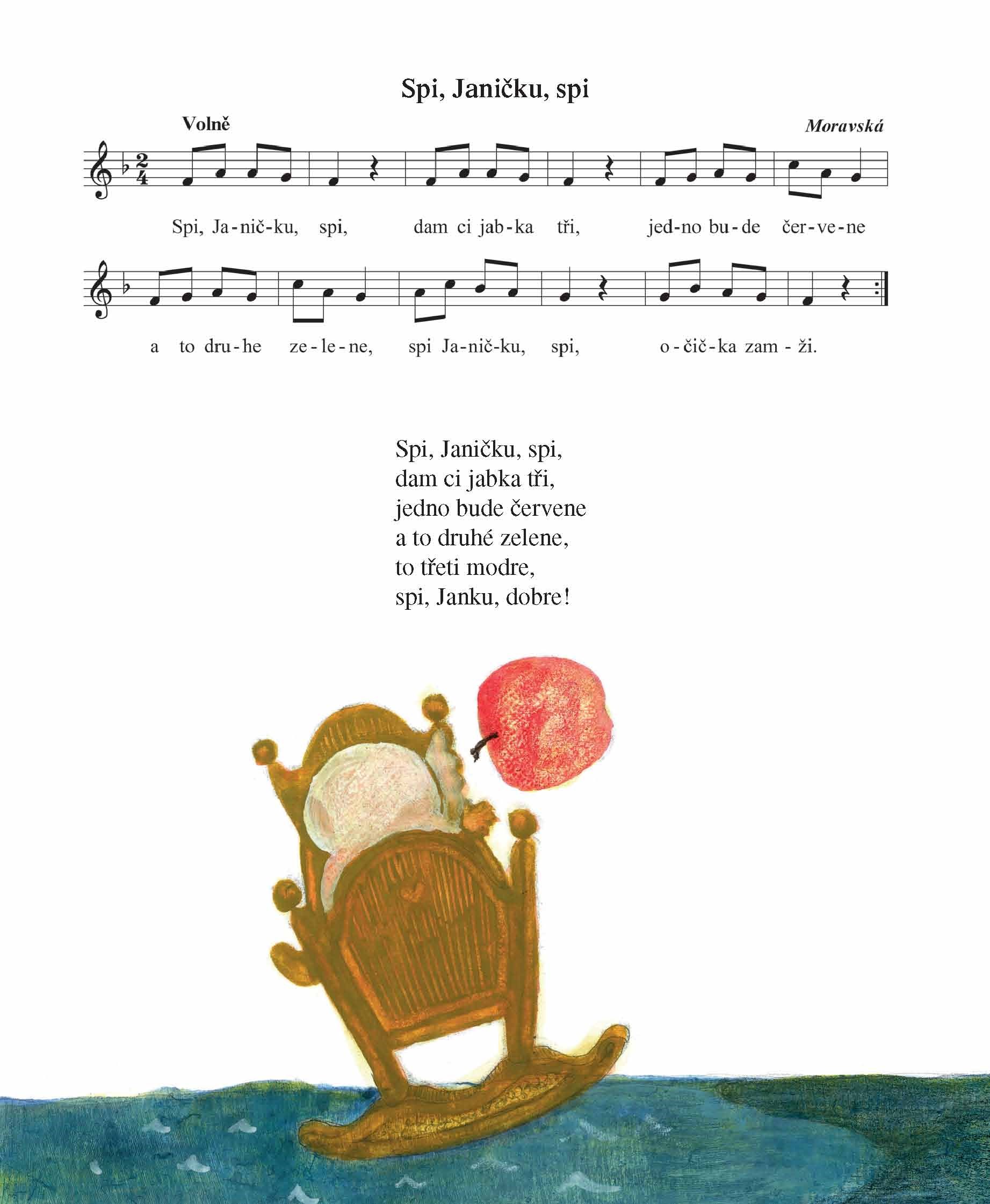 Nejkrásnější české a moravské ukolébavky doplněné jednoduchým notovým zápisem a něžnými ilustracemi. Hajej, můj andílku, Spi, mé malé poupě, Děťátko malý, Sluníčko zašlo a téměř dvacet dalších. Ideální dárek k narození miminka!
