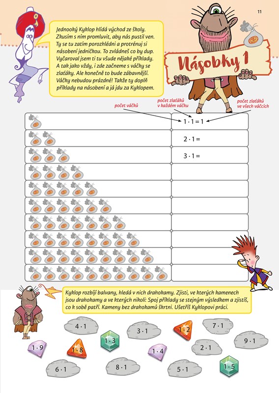 Pokud zrovna bojuješ s násobilkou, připoj se k Edovi z pohádkové školy, který je na tom stejně jako ty. Eda tvou společnost určitě ocení, vždyť ve dvou se to lépe táhne! A navíc pokud si Eda neopraví písemku z matematiky, nepoletí na školní výlet na čarodějnickou horskou dráhu do pohádkových Žlebušic. A to by ho vážně mrzelo. Naštěstí Edovi i tobě s násobilkou pomůže školník Džin a jeho přátelé: jednooký Kyklop, vodník a jeho povedená zelená rodinka, rudovousí loupežníci, ježibaba Ágnes a její kocouři, dále malá víla Lučinka z květinkového království, rytíř Větrník a jeho větrní oři, sedmihlavý drak Flam a nebudou chybět ani rady spanilé princezny, mocného čaroděje nebo nástrahy potměšilých čertů.