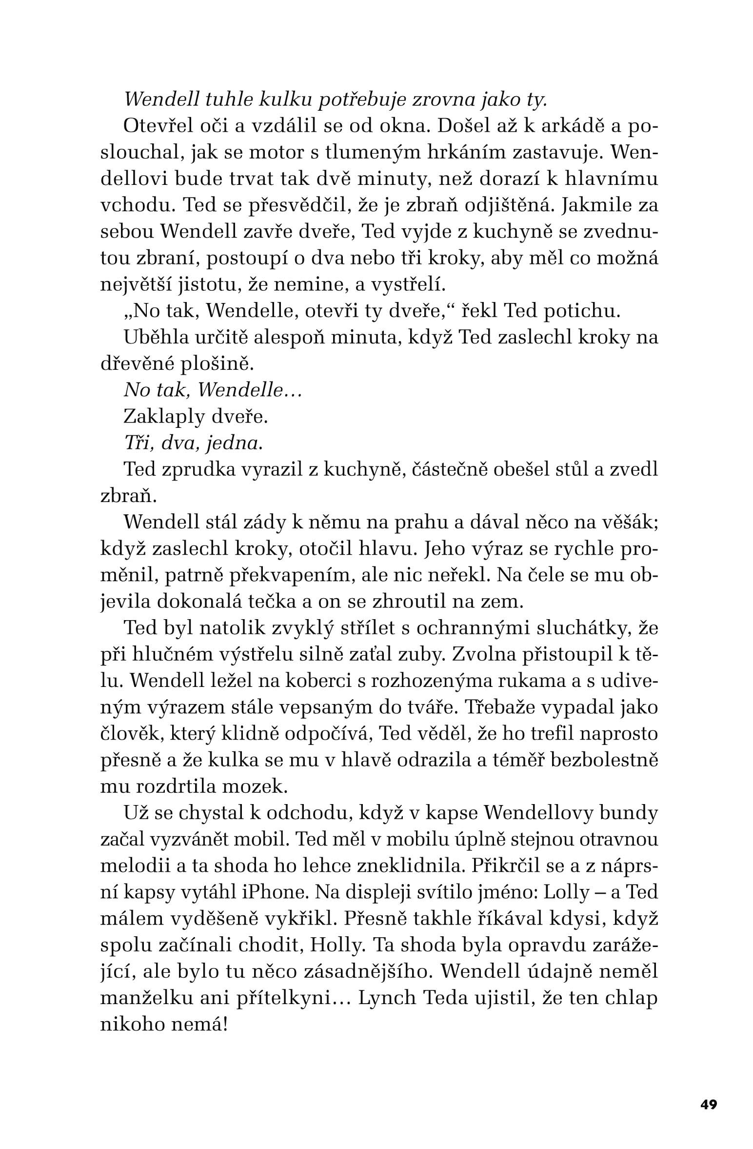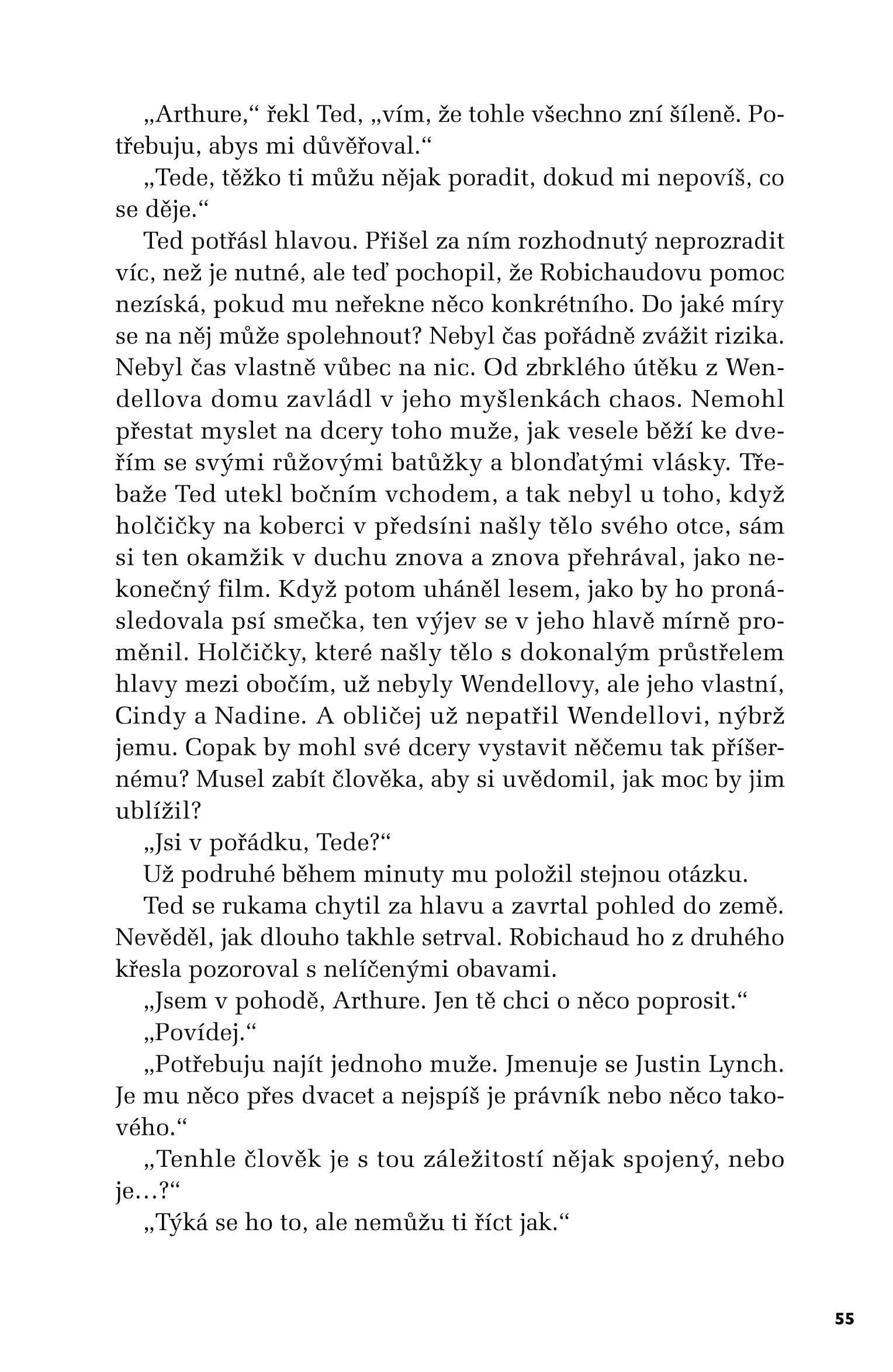 Na prahu stojí cizí muž jménem Lynch, který kupodivu přesně ví, k čemu se Ted chystá, a předloží mu podivný návrh. Pokud na něj Ted přistoupí, nevystaví svou rodinu utrpení, které by jí přinesla jeho sebevražda. Ted se nechá přesvědčit, jenže lístek na stole i nečekaná nabídka jsou jen první tahy v rafinované hře plné manipulace a smrti. Kdosi jej vylákal, aby se vypravil po cestičce z drobečků, které musí sesbírat, než si dá všechno dohromady. Někdo, kdo ho zná až do morku kostí; někdo, kdo ho donutí pochybovat o sobě samém i lidech kolem sebe. Kdo tahá za nitky v pozadí?