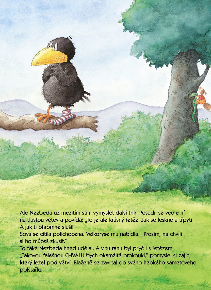 Ten malý havran vypadá jako sympaťák. Nikdo by do něj neřekl, že ukradne všechno, co mu pod zobák přijde. Vždy vymyslí nějaký trik, jak „štípnout“ plyšového medvídka nebo kolečkové brusle. A to dokonce i svým kamarádům. Havran Nezbeda zkrátka chce, aby všechno bylo jeho a s nikým se nemusel dělit.