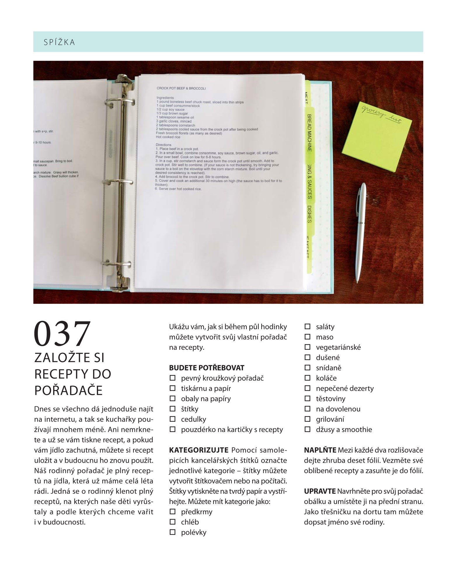 V knize naleznete v přehledných bodech návody pro menší i větší obytné prostory, prakticky rozdělené dle místností, kterých se týkají. Díky nim bude vaše domácnost den ode dne spořádanější a práce vám půjde pěkně od ruky.