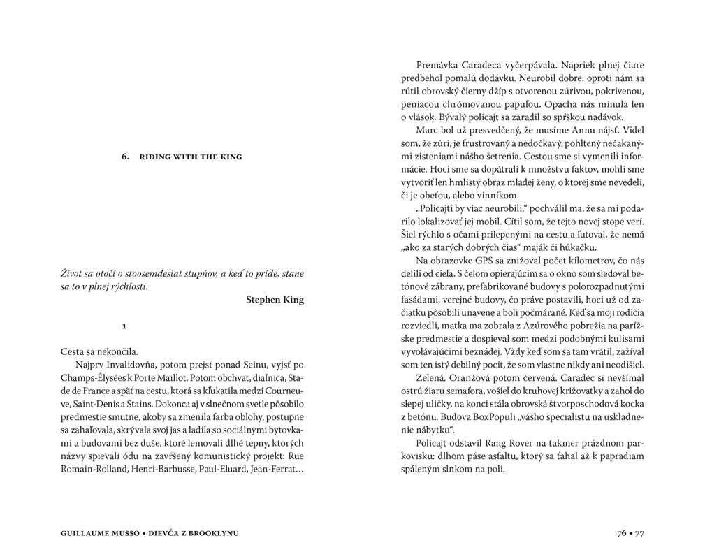 Zdalo sa však, že sa nemám čoho obávať. Bol to jeden rýchly kolotoč a Guillaume ho riadne roztočil. Prestala som mať strach, či to bude dobré a knihu som si užívala. Postavy, prostredie aj uhly pohľadov boli popísané tak, aby ste mali pocit, že poznáte všetko, ale zároveň nepoznáte nič. Mohla som sa tešiť. Až do konca. Samozrejme, nemohli chýbať ani známe krásne citáty, ktoré vystihovali každú novú kapitolu. Aj keď dej napreduje závratným tempom, čitateľ si vždy nájde čas na rozmýšľanie o pekných slovách.