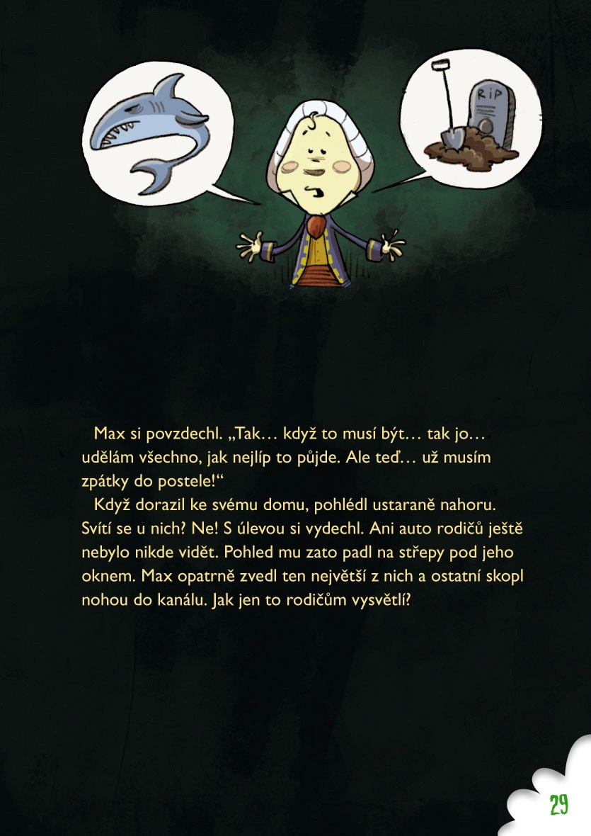A aby těch starostí nebylo málo, všechna strašidla onemocněla. Dostala spalničky, takže mají červenou vyrážku a vypadají ještě děsivěji než dříve. Maxe čeká zapeklitý úkol: potřebuje sehnat ingredience na výrobu léku, který nemoc zažene. Kde ale takové věci získat?
