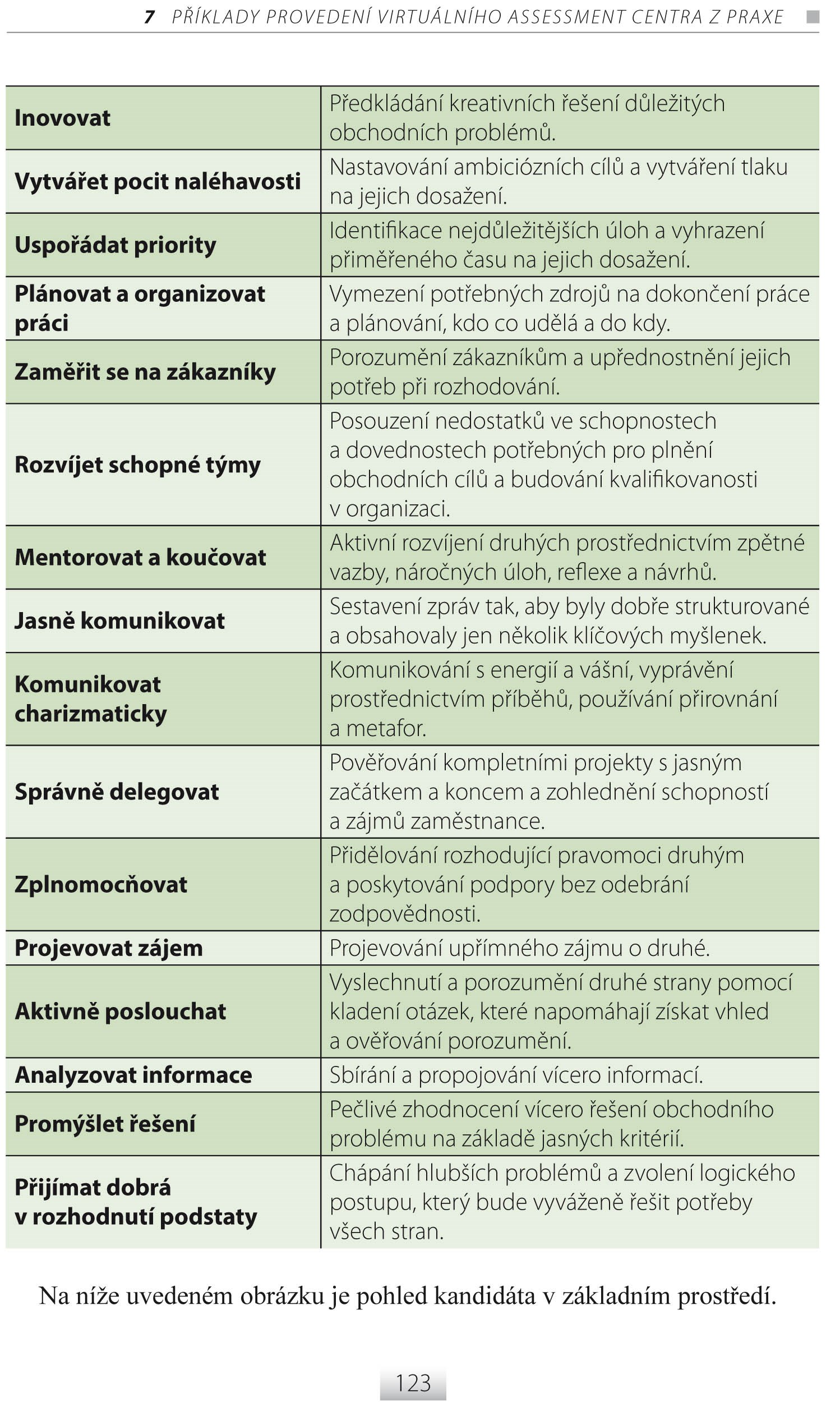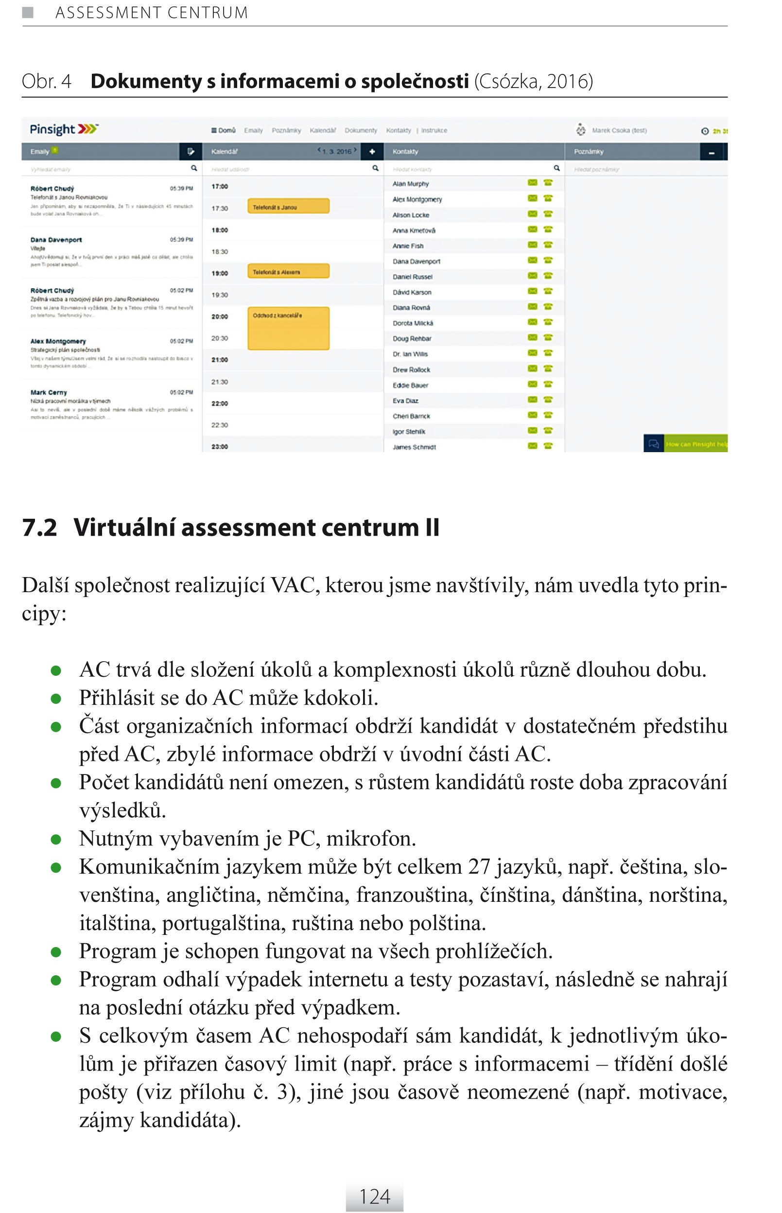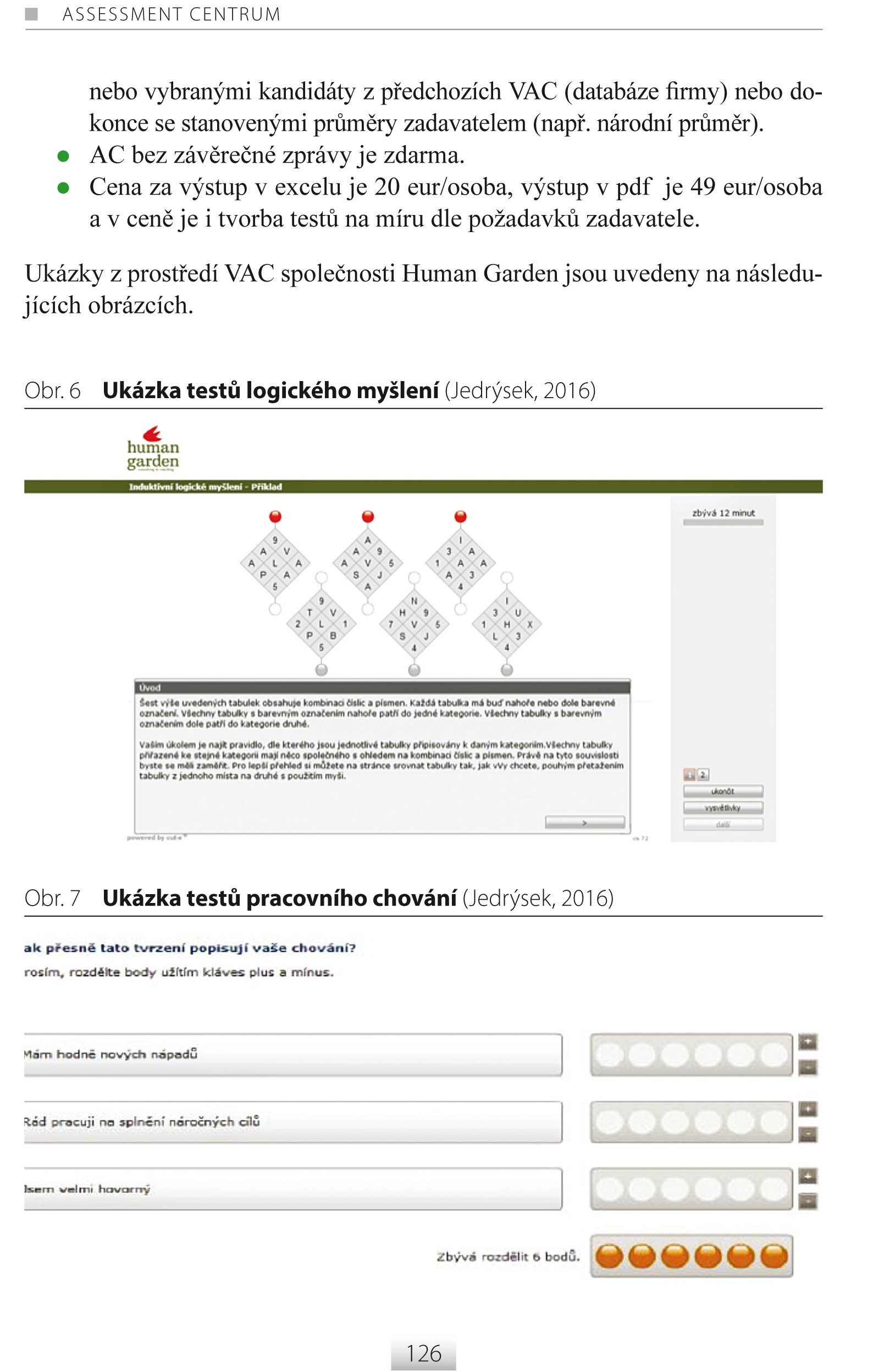 Monografie Assessment centrum. Moderní nástroje výběru zaměstnanců věnuje pozornost aktuálnímu trendu v oblasti diagnostických metod používaných v personalistice, a to především využití virtuálního assessment centra, s nímž se na trhu práce v poslední době stále častěji setkáváme. Assessment centrum je systematický výběrový nástroj, který hodnotí aktuální schopnosti jedince a stanoví jeho budoucí profesionální rozvoj. Jinými slovy, je to metoda založená na pozorování účastníků výběrového řízení v navozených modelových situacích a následném porovnání jejich znalostí, schopností a dovedností s požadavky na výkon konkrétní pracovní pozice, převážně pozice ve vrcholovém managementu. Tato - velmi propracovaná - metoda umožňuje hodnotitelům již během výběrového řízení detailně prověřit konkrétní schopnosti a dovednosti kandidáta, identifikovat jeho silné a slabé stránky, reakce na krizové situace a způsoby jeho chování, a vnést tak objektivitu do rozhodování o obsazení příslušných pozic a následném řízení zaměstnanců. Umožňuje zkrátka vybrat přesně takové zaměstnance, jaké organizace potřebuje. V případě virtuálního assessment centra – které má podobnou strukturu jako klasické assessment centrum - řeší jedinec v rámci diagnostiky příslušné úkoly v elektronickém prostředí a od klasického se liší tím, že umožňuje preciznější měřitelnost sledovaných parametrů.