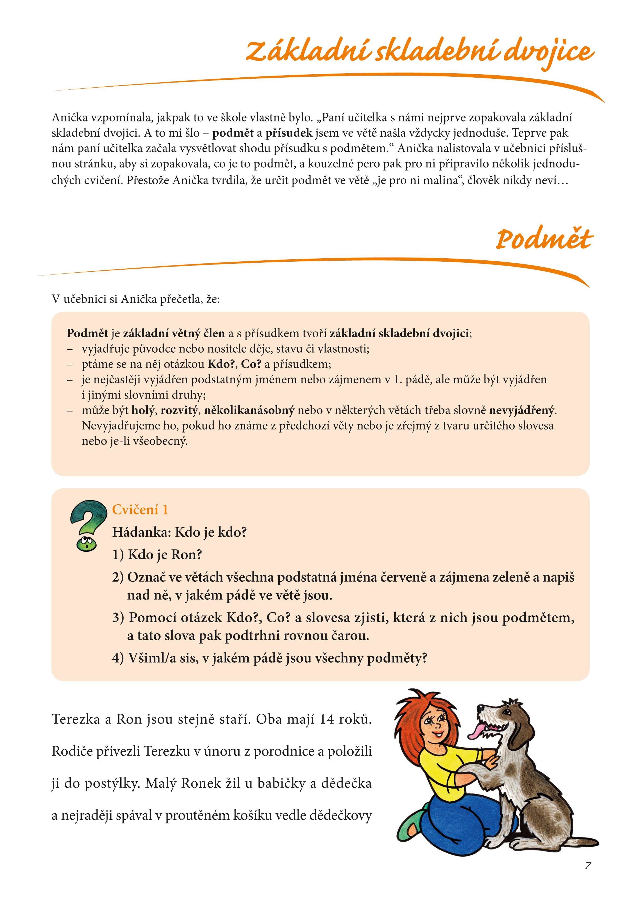 • jednoduchá pravidla při určování podmětu a přísudku,