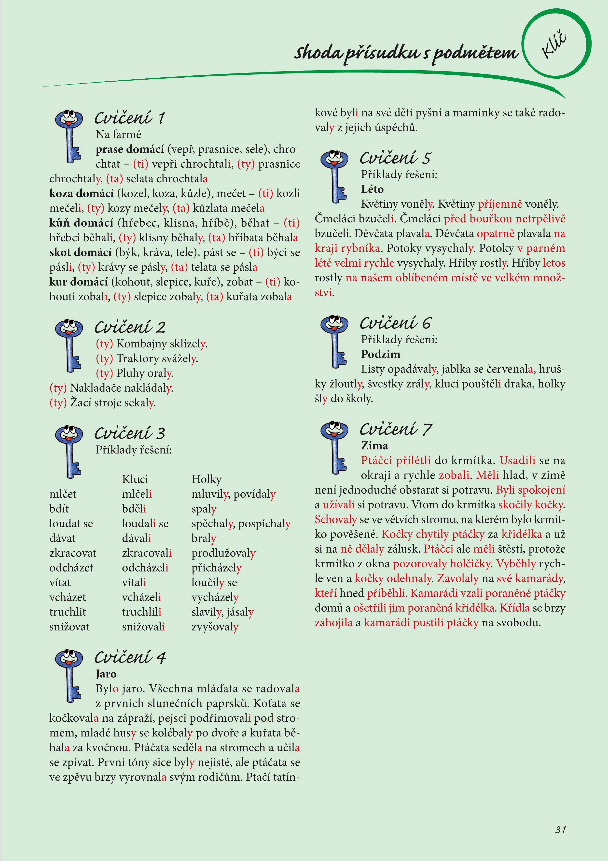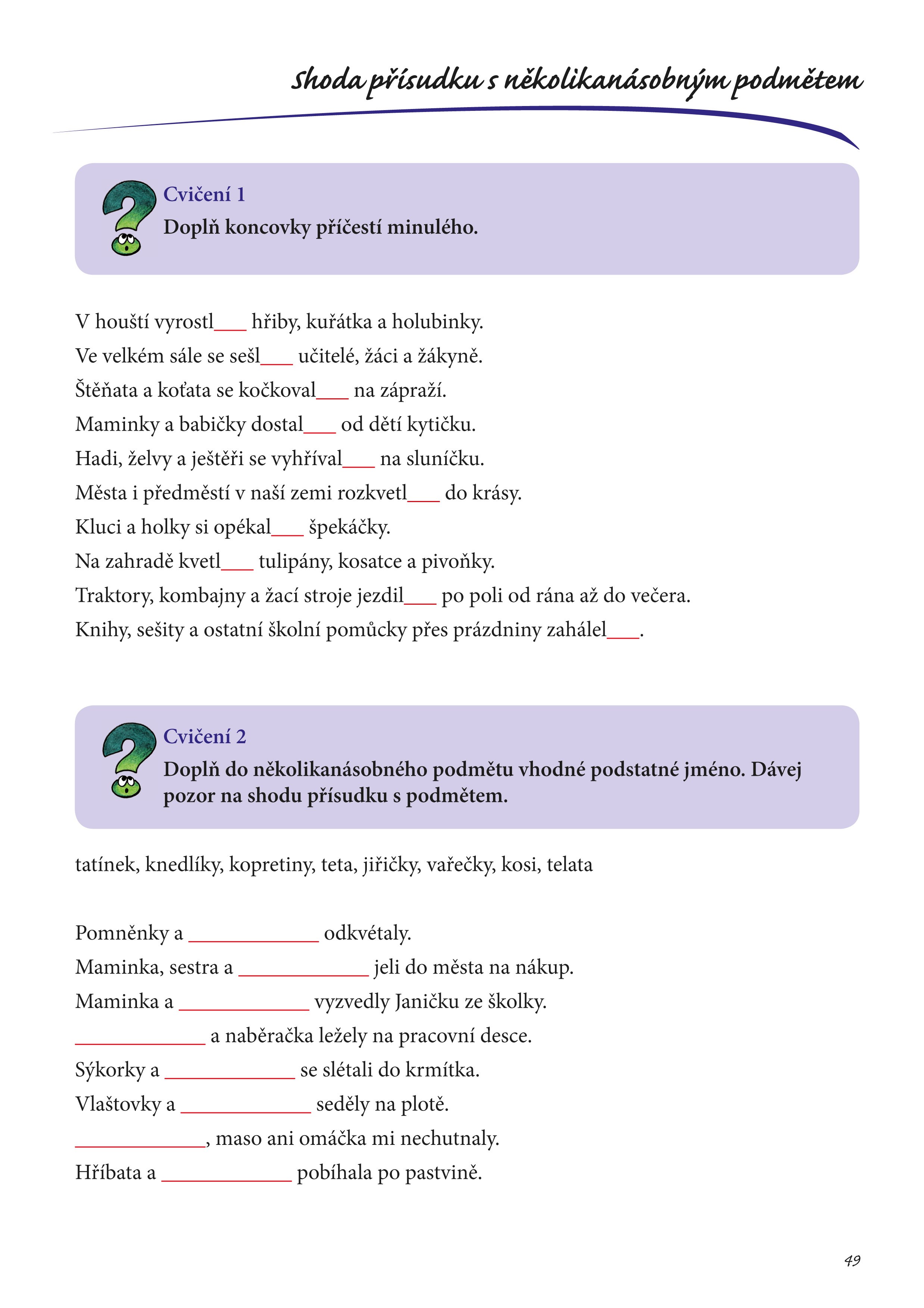 • vysvětlení pravidel pro shodu přísudku s podmětem,