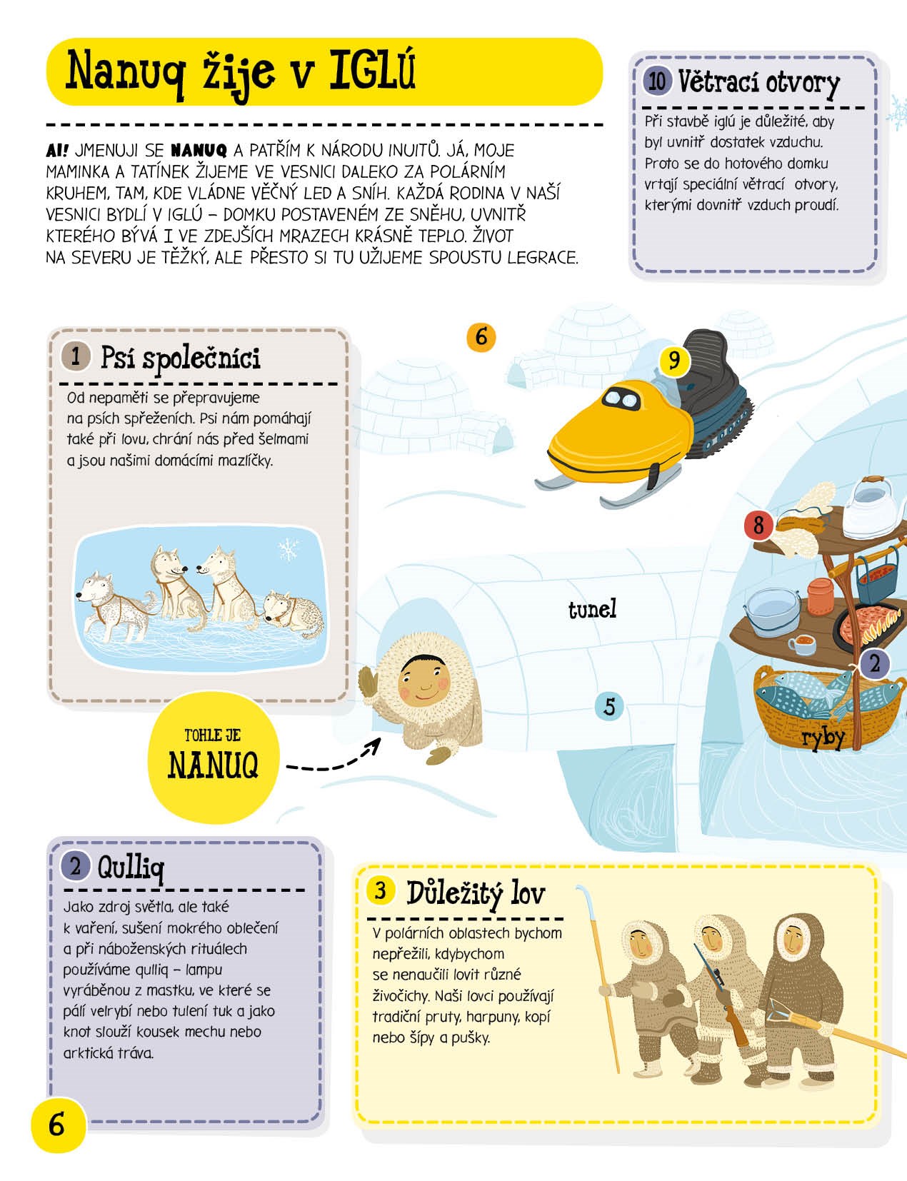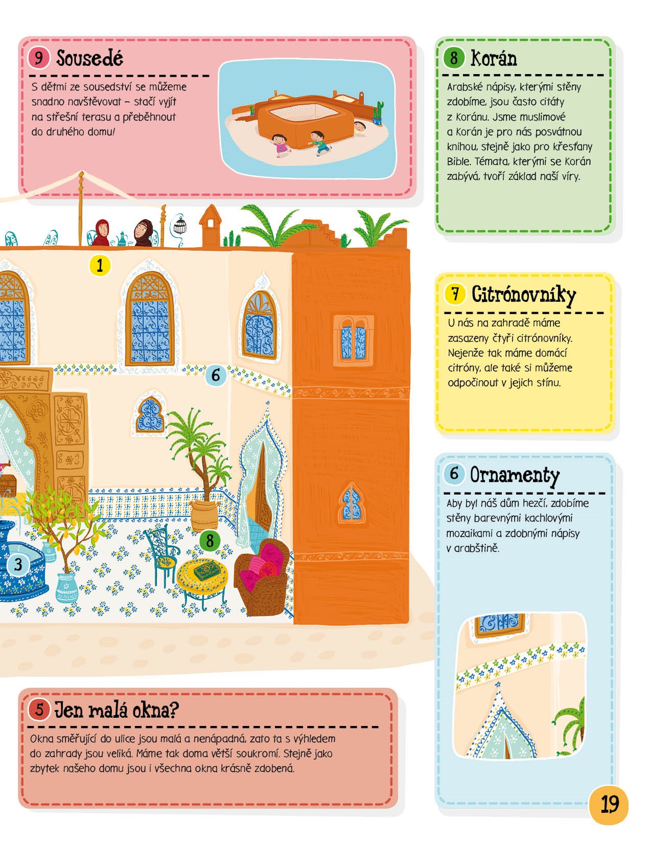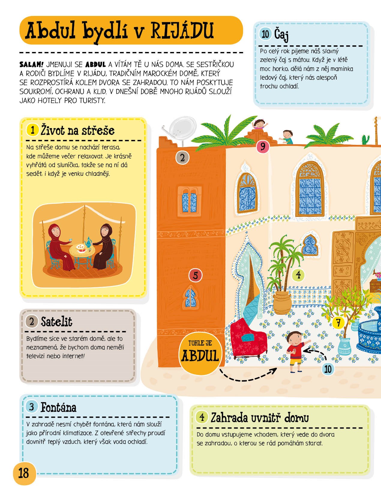 Přemýšlel jsi někdy o tom, jak bydlí děti v jiných zemích? Díky této knize máš skvělou příležitost nahlédnout do příbytků ze všech kontinentů a poznat, jak se od sebe mohou životy dětí lišit. Lidé si staví své domy tak, aby byly dobře uzpůsobené místním podmínkám a zároveň se v nich příjemně bydlelo. Víš, jak bydlí děti v Mongolsku? Jaký je život v ledovém iglú? A co v takovém deštném pralese? Připrav se na cestu a pojď s námi nahlédnout do obydlí ze všech koutů světa! Poznáš tak nové kamarády, kteří tě seznámí se svojí kulturou!