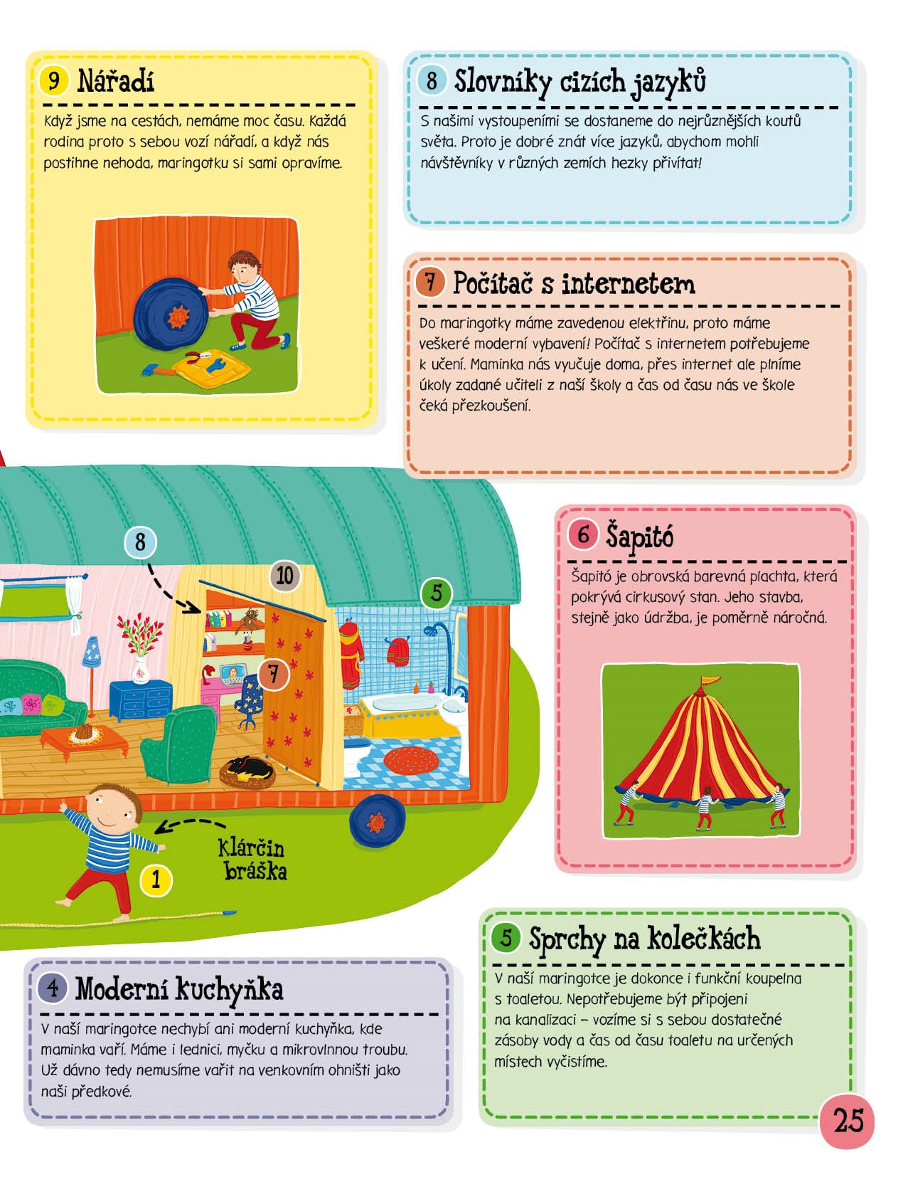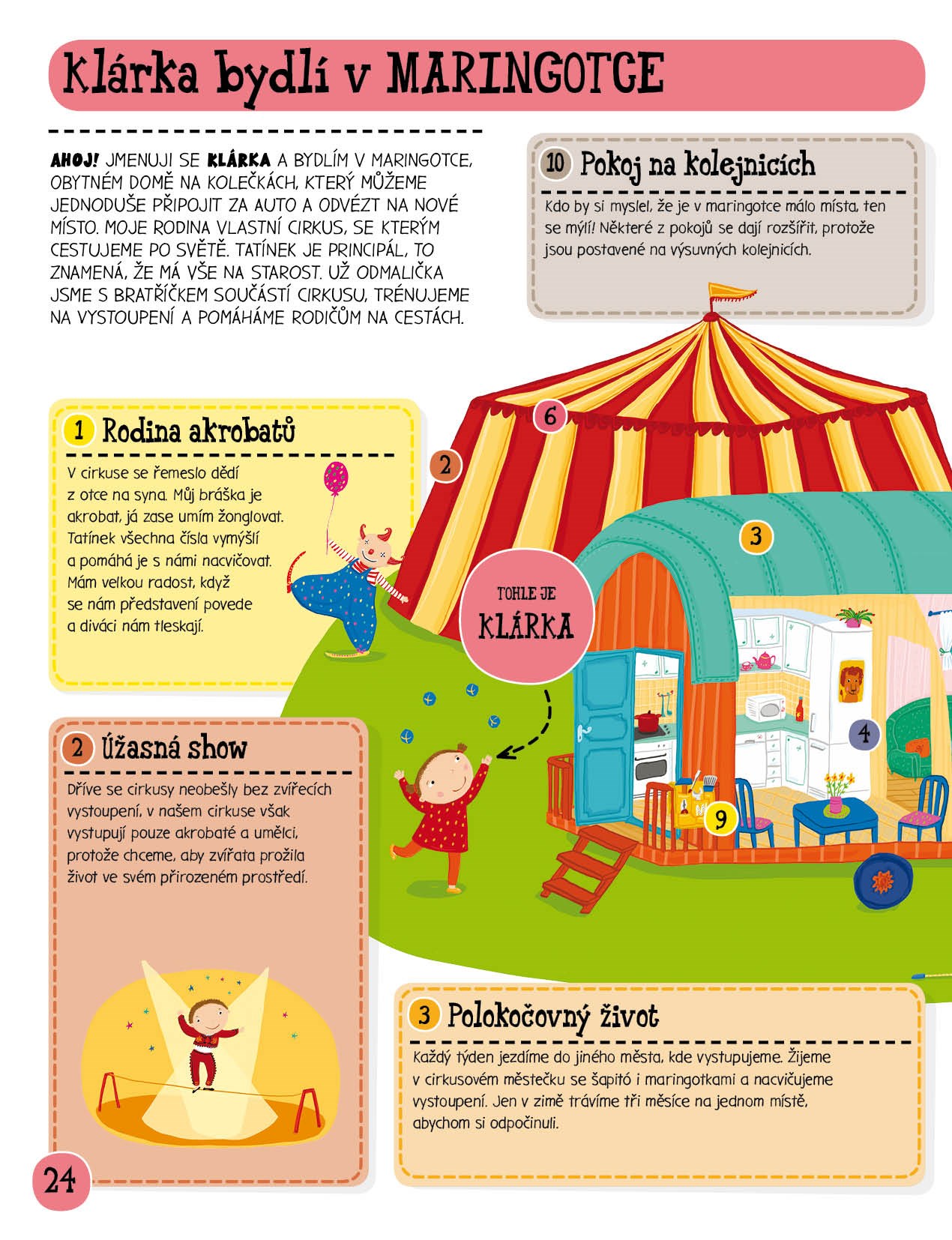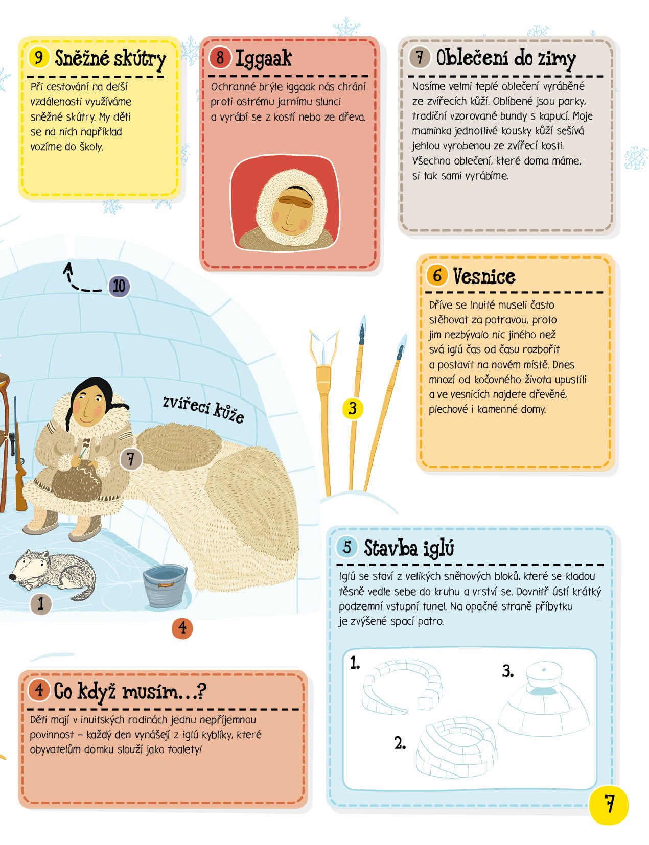Přemýšlel jsi někdy o tom, jak bydlí děti v jiných zemích? Díky této knize máš skvělou příležitost nahlédnout do příbytků ze všech kontinentů a poznat, jak se od sebe mohou životy dětí lišit. Lidé si staví své domy tak, aby byly dobře uzpůsobené místním podmínkám a zároveň se v nich příjemně bydlelo. Víš, jak bydlí děti v Mongolsku? Jaký je život v ledovém iglú? A co v takovém deštném pralese? Připrav se na cestu a pojď s námi nahlédnout do obydlí ze všech koutů světa! Poznáš tak nové kamarády, kteří tě seznámí se svojí kulturou!