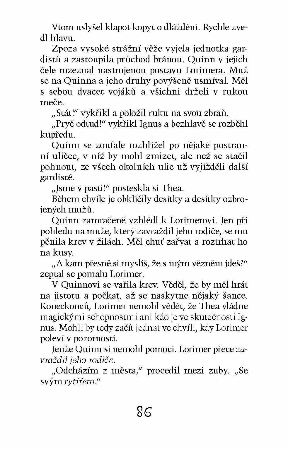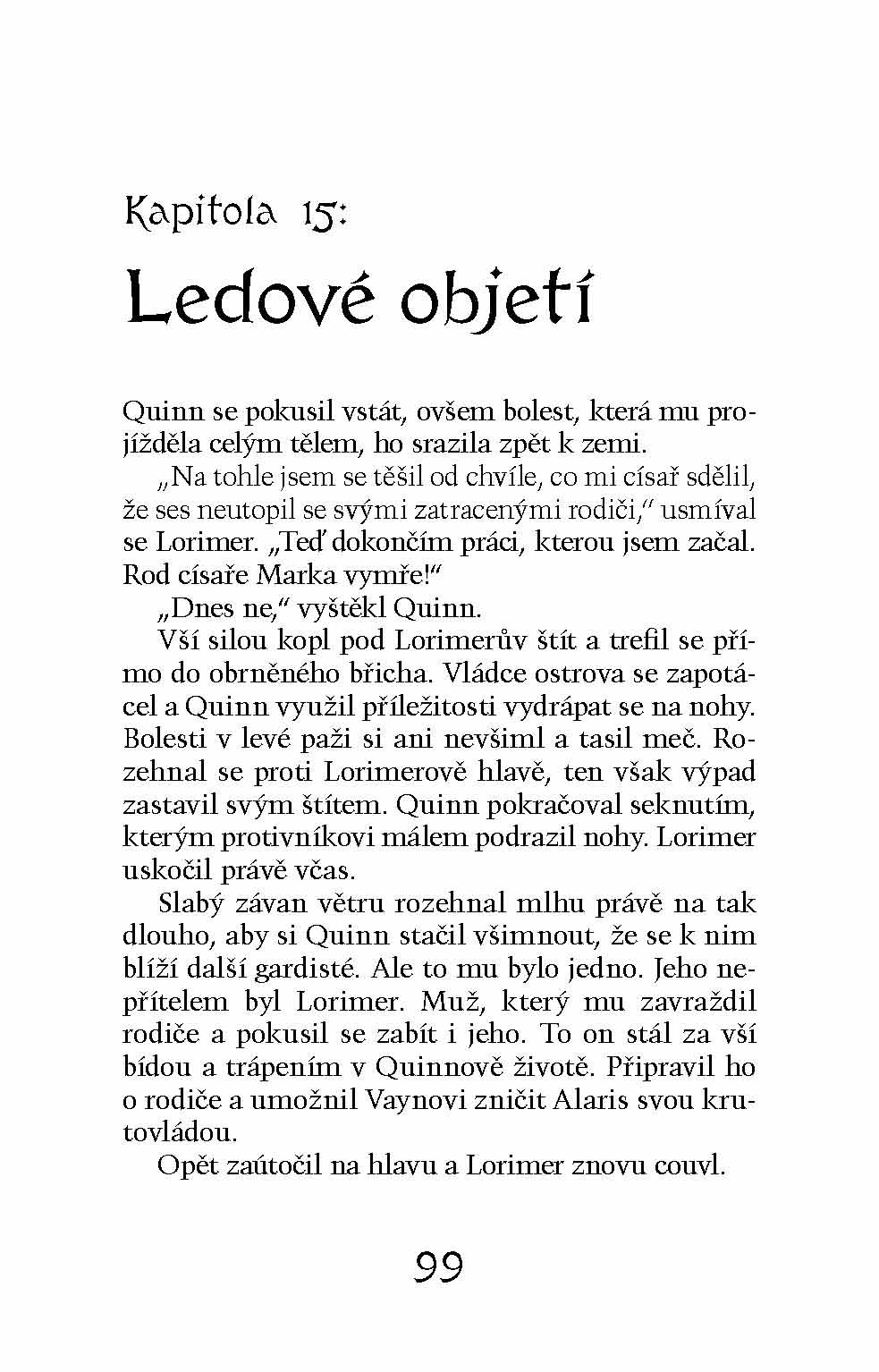 Zlý generál Vayn, který svrhl císaře a dračí rytíře spoutal v jejich lidské podobě, stále panuje na Alariských ostrovech. Dvanáctiletému korunnímu princi Quinnovi se s pomocí odvážné dívky They podařilo najít a osvobodit Ohnivého draka Ignuse. Společně putují po ostrově Keris, ale generálova Černá garda jim je stále v patách. V nejtěžší chvíli je zachrání Ulric, další dračí rytíř. Mohou mu ale opravdu důvěřovat? A dokáže Quinn ovládnout své nově nalezené dračí schopnosti, než bude příliš pozdě?