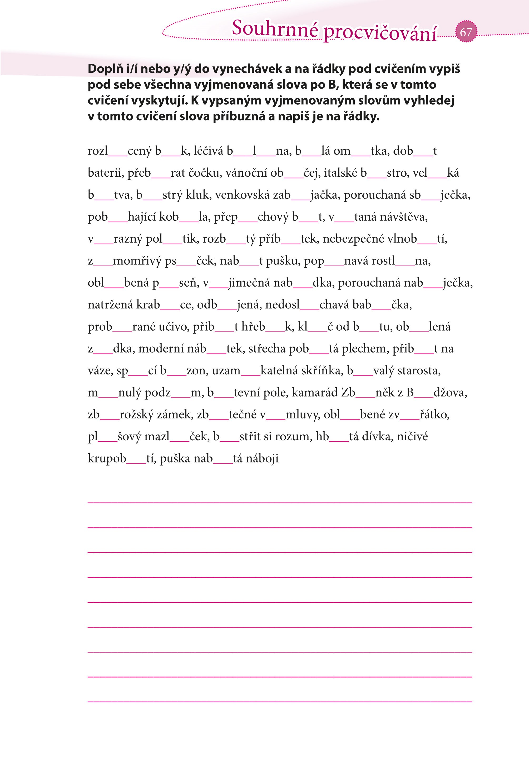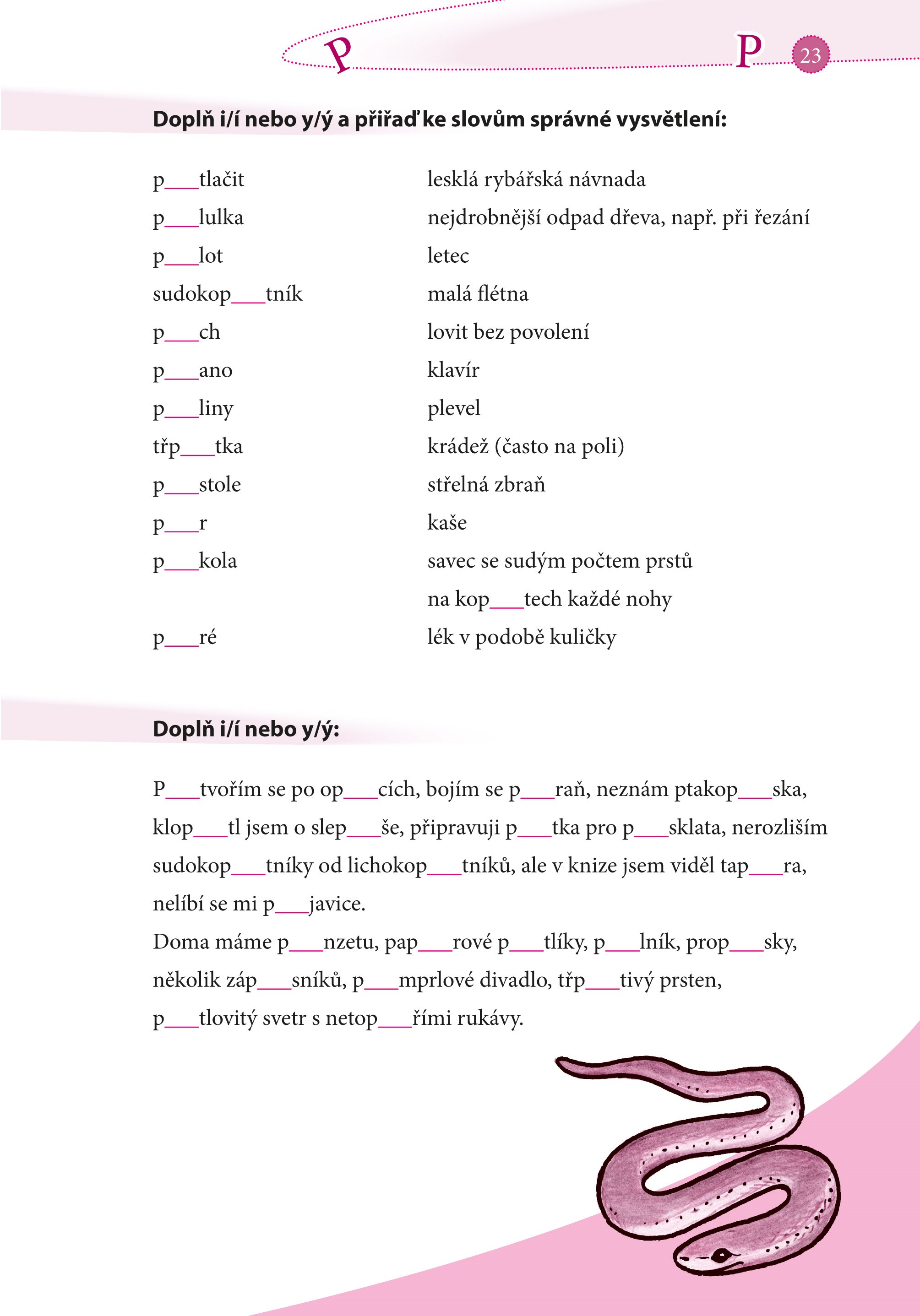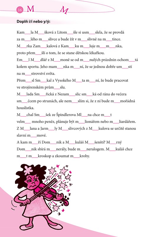 Pak jsou Desetiminutovky určeny právě vám! Občas se v knize setkáte s úsměvnou větou, vtípkem nebo se potěšíte veselým obrázkem, ale čeká vás především spousta materiálu na procvičení vyjmenovaných slov. Vyplňujte jeden list po druhém, anebo na přeskáčku. Vytrhejte jednotlivé listy a vyplňujte třeba v tramvaji, anebo je nechejte v knížce, jak je libo. A nakonec si z listů poskládejte třeba lodičku pro mladšího brášku.