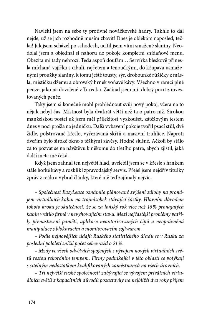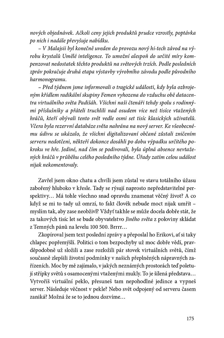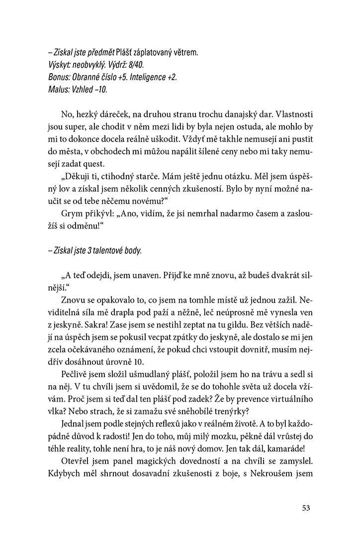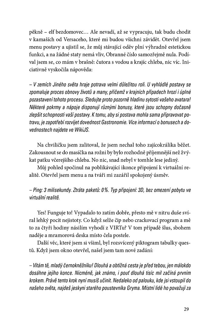 Píší se třicátá léta jednadvacátého století a světem se šíří záhadný fenomén nazývaný vtažení. Hráčům online her se stále častěji stává, že se jejich vědomí oddělí od smrtelného těla a zůstane navždy uvězněno ve virtuální realitě. Dokážete si představit peklo, které čeká na nešťastníka vtaženého do hry Tetris? Nebo bezmoc, kterou cítí hráč, který uvízl v tankovém simulátoru a několikrát denně se musí smažit v rozžhaveném pancíři bitevního stroje? Hráčům her na hrdiny se ovšem vtažením otevírá vyhlídka na nekonečné dobrodružství v úchvatném světě meče a magie.