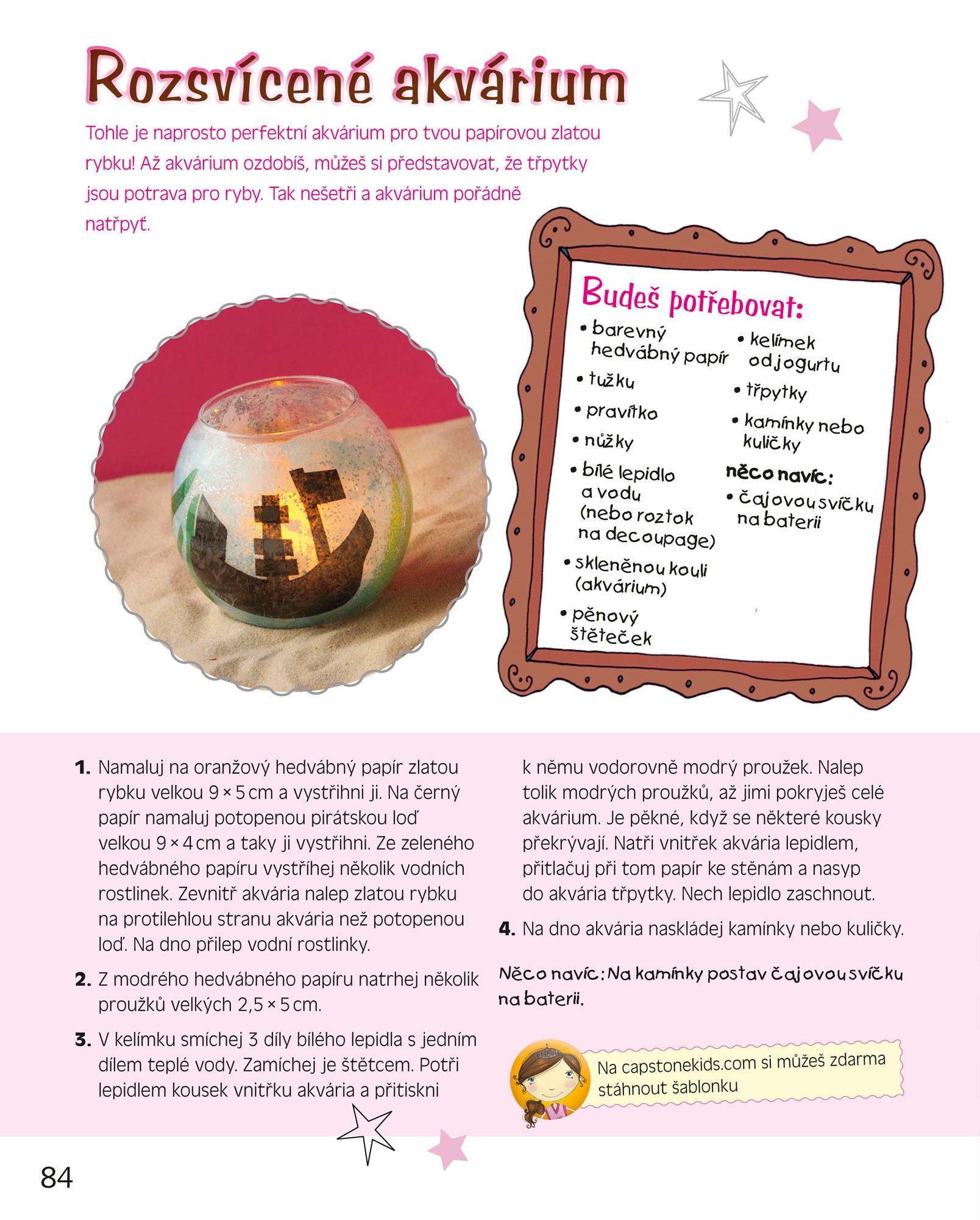 Baví tě vytváření různých doplňků, drobností a nezbytností pro holčičky, ale i pro kovbojky, tábornice nebo pirátky? Jestli si ráda hraješ s papírem, látkou, korálky či ozdobnými kamínky, je tato kniha pro tebe jako stvořená. Káťa Líbezná ti prozradí svoje tipy, s kterými ti všechno půjde skoro samo. Tak se s ní pusť do práce a potěš svými výrobky například nějakou kamarádku.