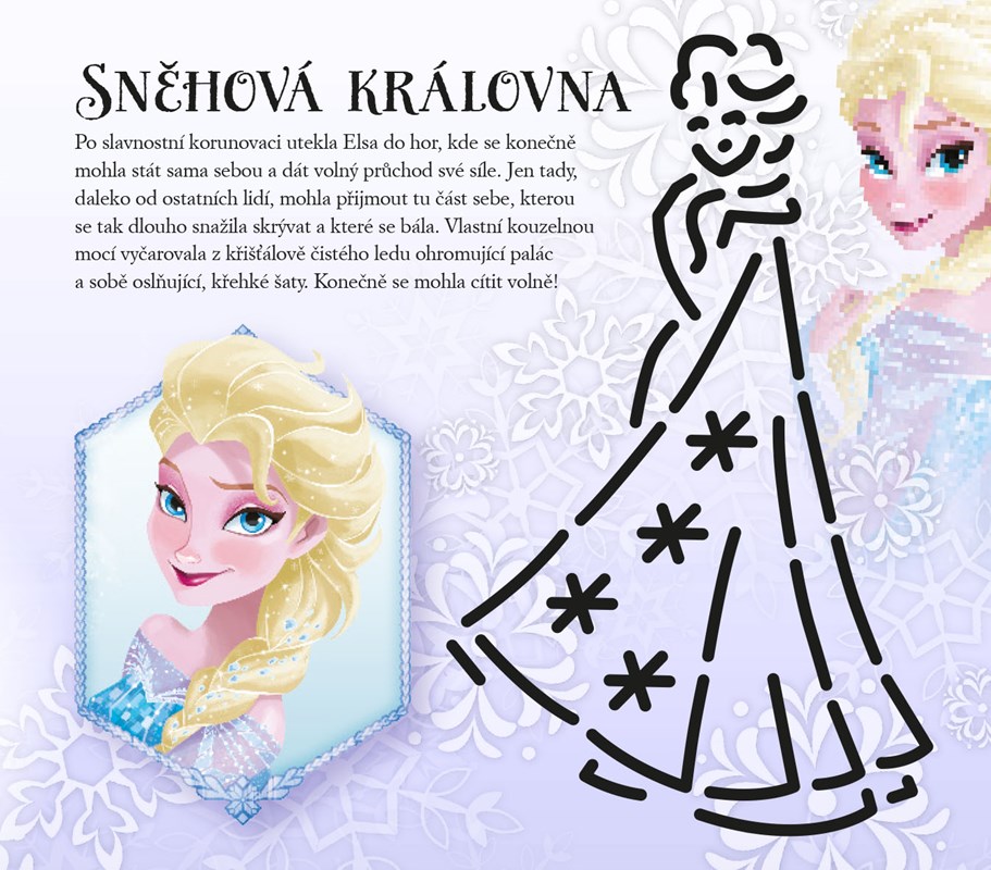 Buď umělcem se známými hrdiny z Arendelle! Poznej zajímavosti ze života svých oblíbených postav z Ledového království a pusť se s nimi do tvoření nádherných obrázků. S pomocí osmi šablon kresli dokonalé obrazy, které můžeš vybarvovat pastelkami, vodovkami nebo fixami a dotvářet podle vlastní fantazie. Krásné obrázky budou ozdobou tvého pokojíčku nebo dokonalým dárkem pro nejlepší kamarády.