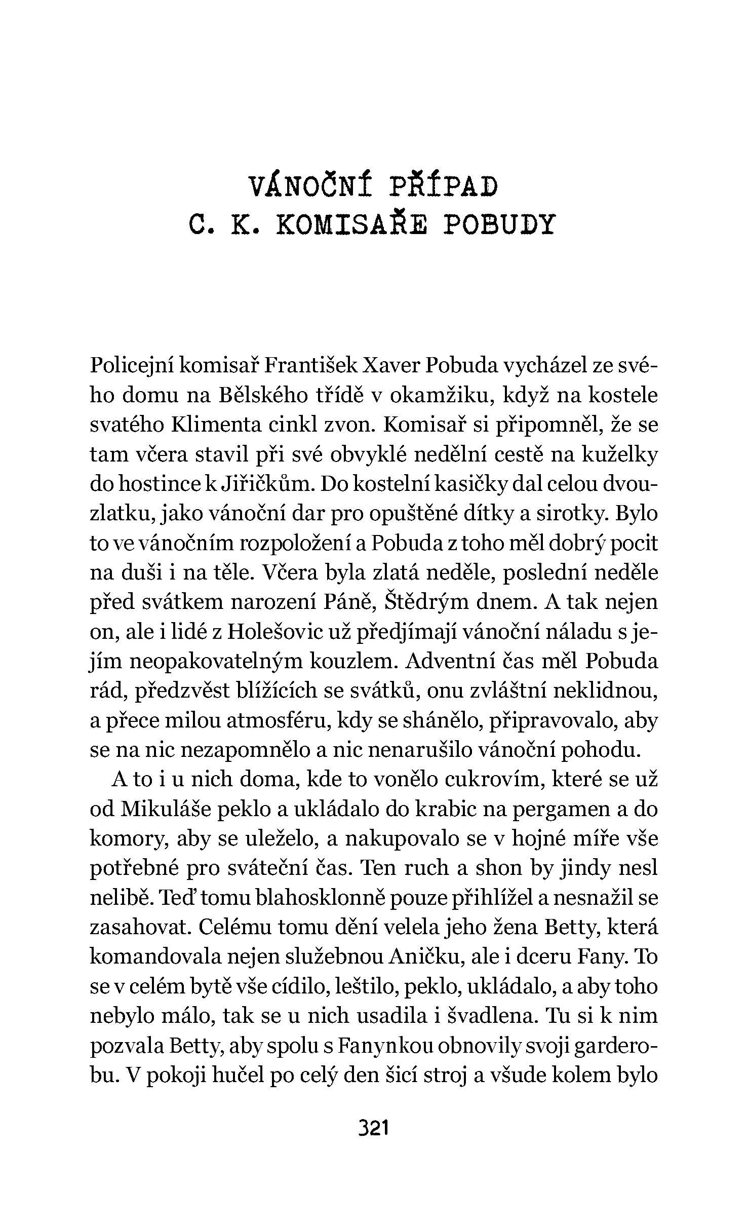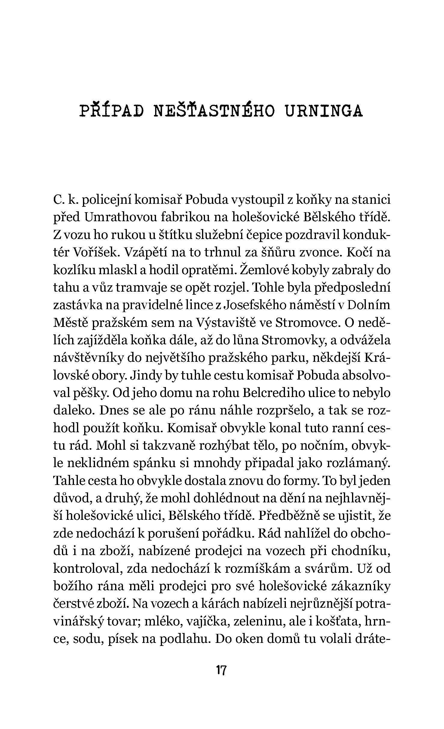 František Xaver Pobuda je policejním komisařem sedmého pražského obvodu Holešovice a bdí nad pořádkem a klidem ve své čtvrti. Rok 1896 nebyl zrovna tím nešťastnějším a v jeho čtvrti se staly hned tři hrdelní zločiny. Případ nešťastného urninga nás zavádí do temných koutů Prahy, kde vyplouvají na povrch skryté lidské neřesti a vášně. V druhém případě s názvem Případ dvakrát mrtvého muže řeší komisař bestiální otcovraždu, která byla provedena zvlášť rafinovaným způsobem. Třetím je pak Vánoční případ c. k. komisaře Pobudy. V něm se komisař snaží dostat holešovického gruntovníka ze spárů lichvářky, jejíž vražda má osudovou dohru pro nevinného i po její smrti. Všechny tyto případy dokázal policejní komisař Pobuda objasnit, pachatele zatknout, usvědčit a předat c. k. trestnímu soudu v Praze. Při svém pátrání má dva spolupracovníky, policejního koncipistu Nebeského a vynalézavého policejního praktikanta Rybičku, kteří mají na vyřešení všech tří případů lví podíl.