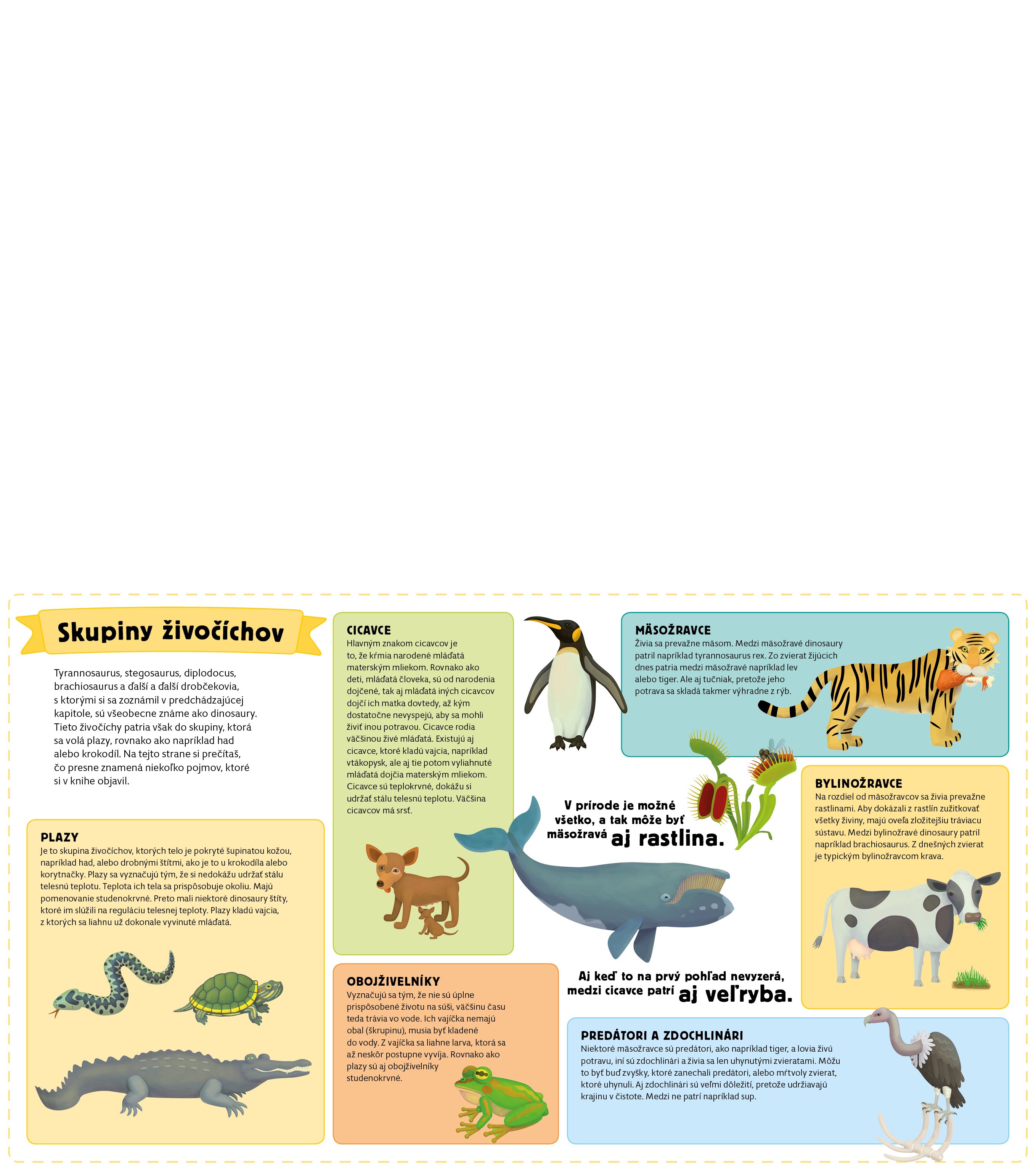 • dinosaury, mamuty, tigre šabľozubé a veľa ďalších tvorov