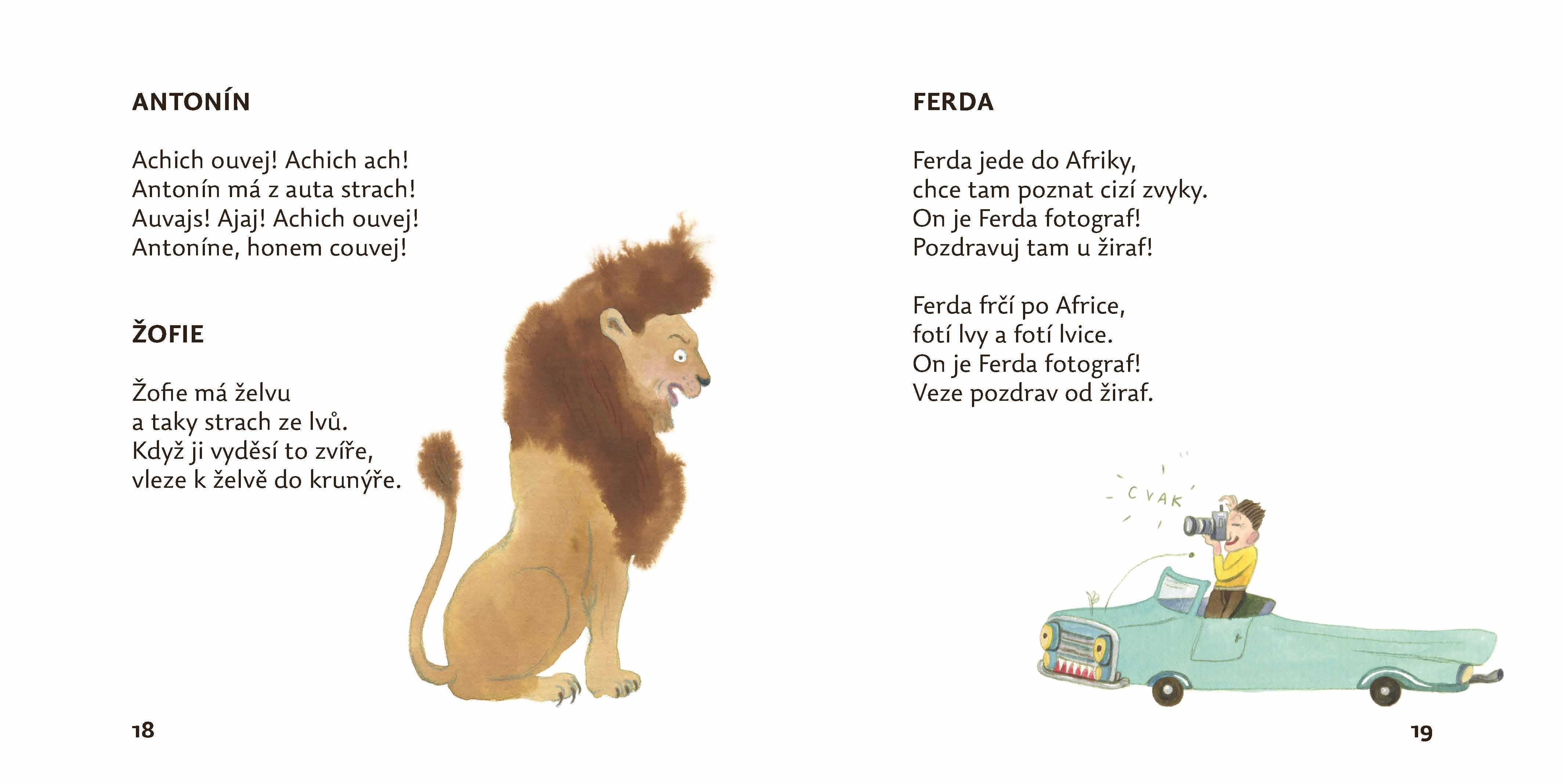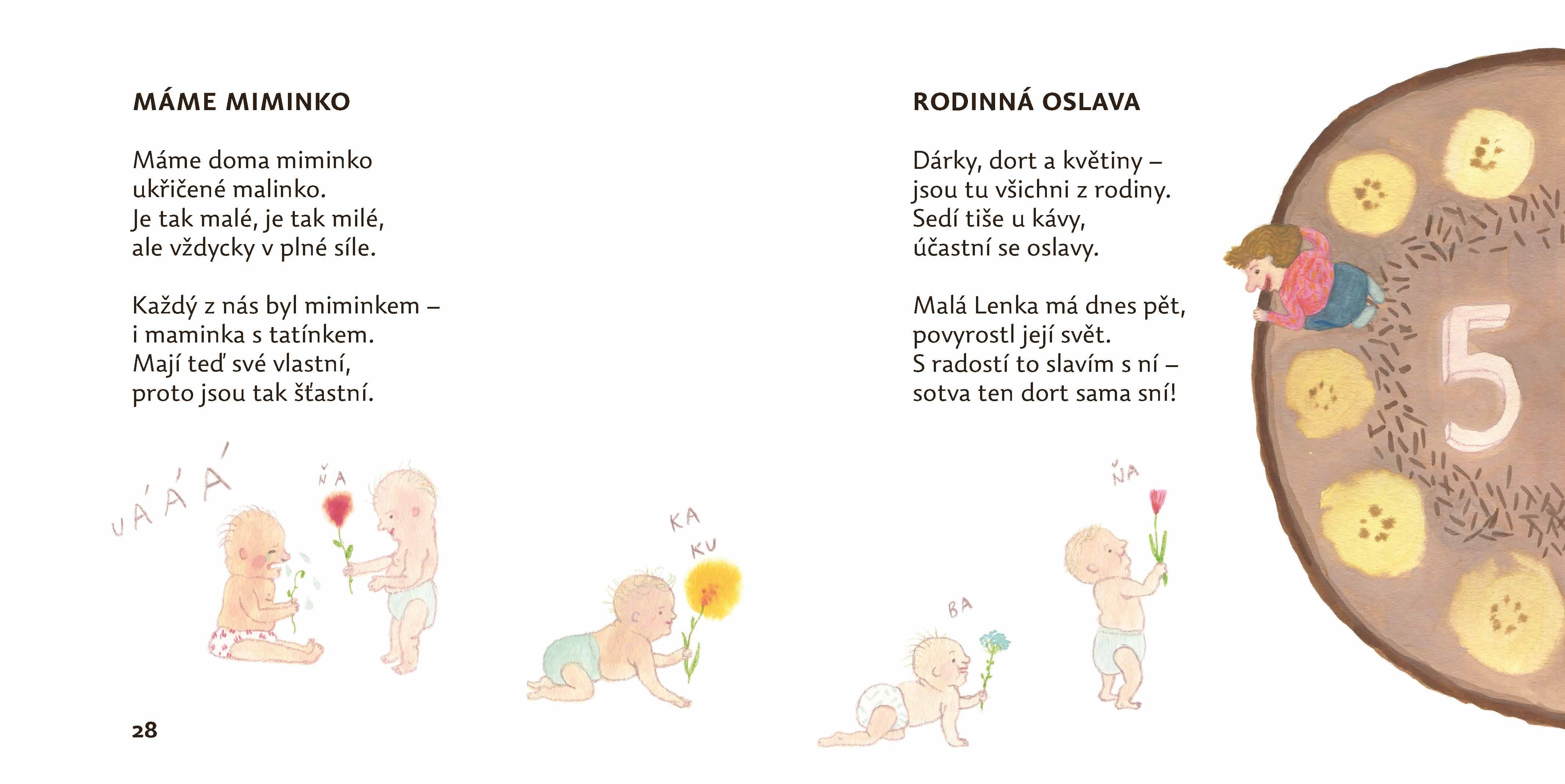 Krátké veselé básničky, nonsensové veršíky a další řečičky o všem možném, o zvířátkách, o klucích a holčičkách (o holčičce, která si vlezla do želvího krunýře, o jiné holčičce, která si nechala narůst vousy), tetách, pánech, švestkách nebo třeba hruškách. Veselé texty Radka Malého doprovázejí půvabné ilustrace Alžběty Skálové.