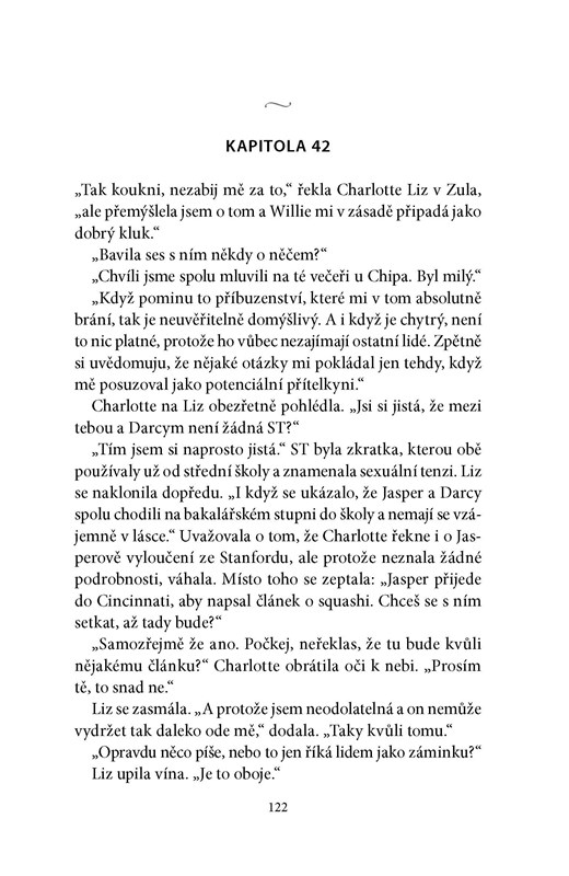 Ústrednou postavou je samozrejme Liz a jej vzťah s Darcym. Obaja sú tak zahľadení sami do seba, sú hrdí na svoju prácu a názory, že je až prekvapujúce, že voči sebe dokázali aj napriek mnohým výčitkám pocítiť sympatie. Trochu ma sklamalo, ako sa ich vzťah vyvíjal. Nešlo tu o nehynúcu romantickú lásku ako v Pýche a predsudku. Ani Darcy, ani Liz tu neboli takí okúzľujúci, ale rozumiem, že sme predsa len v 21.storočí a tanec na večierku takmer 40-ročných ľudí neuspokojí a nakoniec sa to aj tak skončí v posteli. A nie, naozaj nie až po svadbe :)