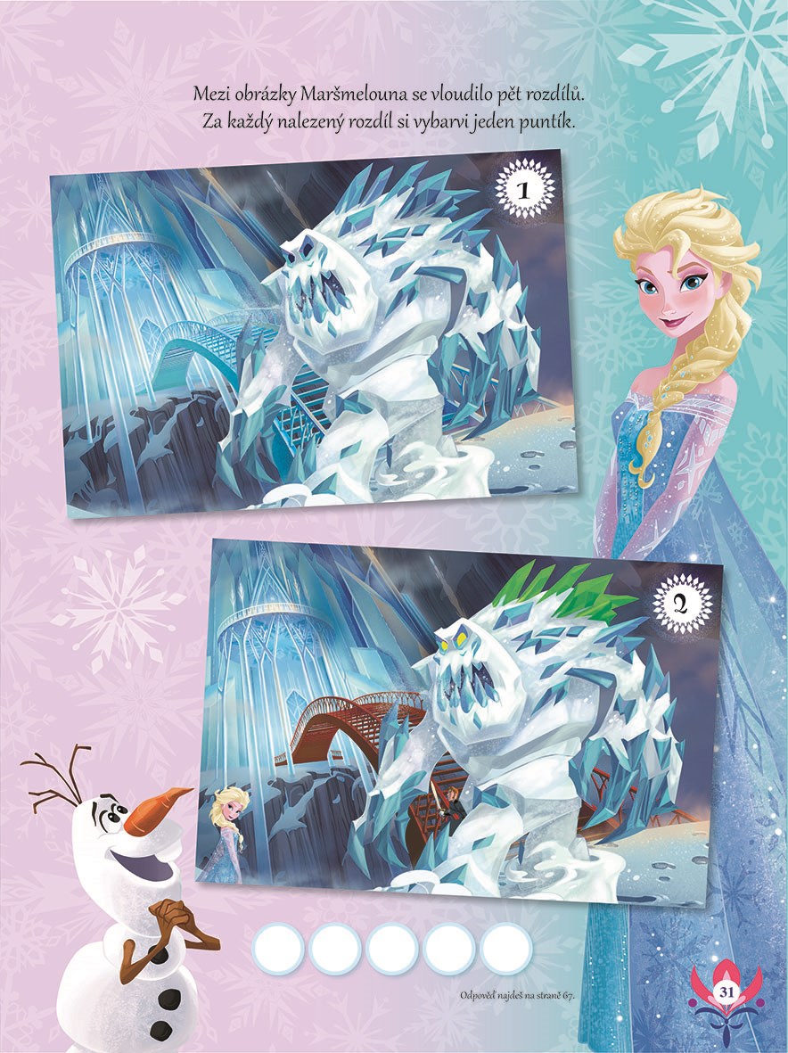 Vítej opět v Ledovém království! V této knize se nejprve seznámíš s hlavními postavami a potom si přečteš krásný příběh o ledových kouzlech. Máme pro tebe i plno hádanek a doplňovaček, kreslené komiksy, omalovánky, pár návodů na zhotovení pěkných dekorací a dokonce i hry. Ve společnosti Anny, Elsy, Kristoffa, Olafa a Svena se určitě nudit nebudeš!