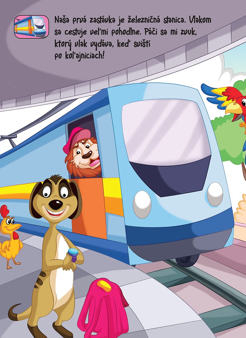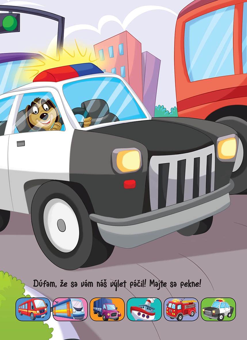 Vydajte sa so svojimi deťmi na zábavný výlet. Stretnete sa na ňom s rôznymi dopravnými prostriedkami a dozviete sa, čo tieto stroje dokážu a čím sú užitočné. Deti sa zábavnou formou naučia spájať správne zvuky s jednotlivými dopravnými prostriedkami.