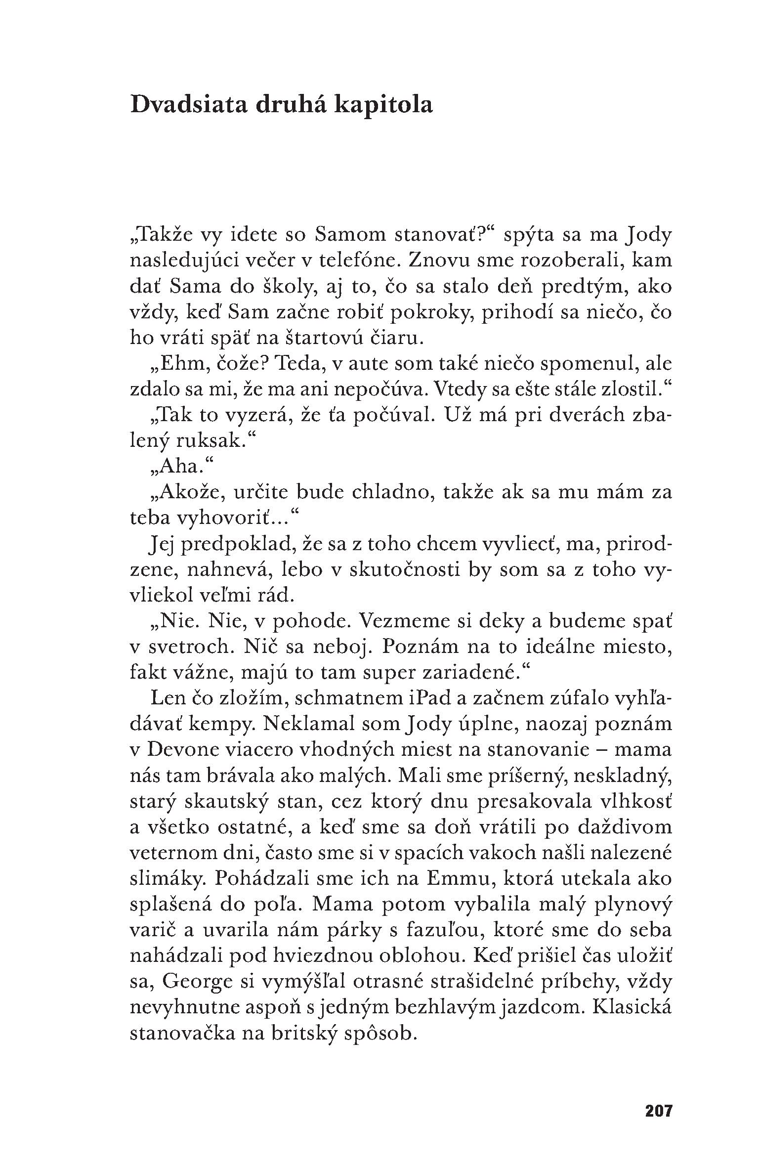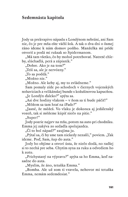 Hoci by sa z prvých stránok románu zdalo, že sa príbeh bude niesť v pochmúrnej nálade, opak je pravdou, a ponúka pozitívny odkaz rodičom, ktorí sú v podobnej situácii. Autor dokáže čitateľa rozcitlivieť, rozplakať, no aj nahnevať či vyvolať záchvat smiechu, a to aj vo vážnych situáciách. Napätú atmosféru vie nenútene uvoľniť vtipnou hláškou. Veď v niektorých situáciách rodičom asi nič iné ani neostáva, len sa pousmiať a nebrať všetko tak vážne…