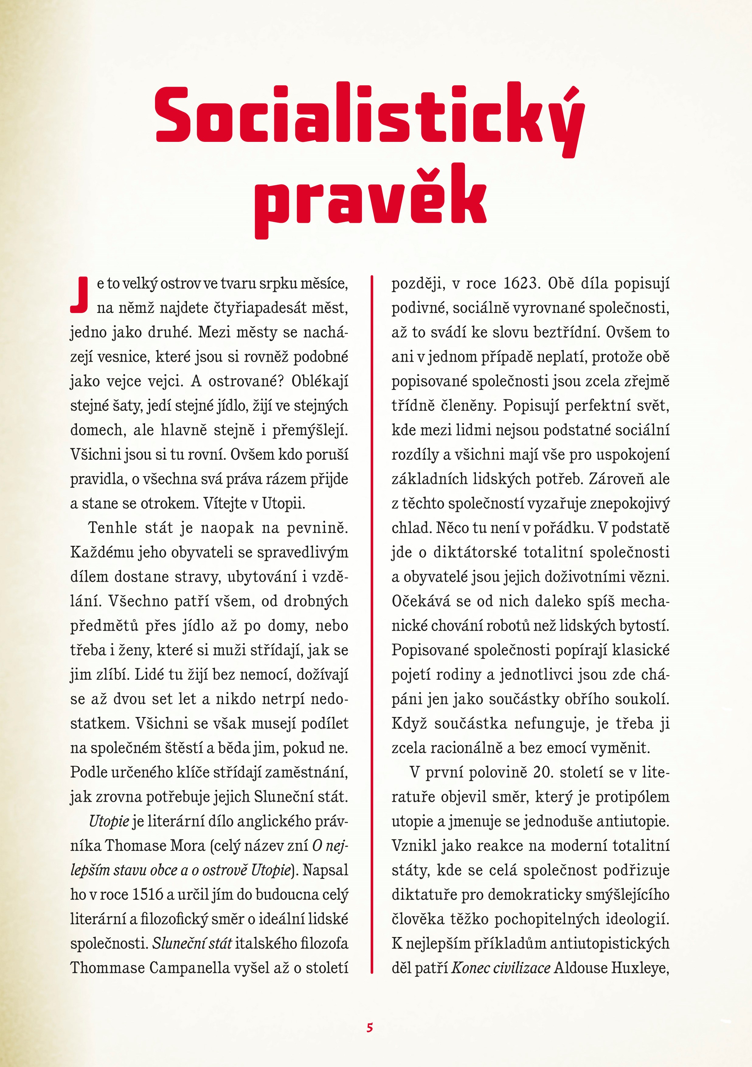 Už pár hodin po státním převratu v Rusku v říjnu 1917 začali bolševici vytvářet alternativní historii. Záměrně zkreslili fakta o své revoluci i o jejích aktérech. Cílem bylo udělat z převratu hrdinský čin, který má navíc podporu většiny ruského národa, a z aktérů neohrožené hrdiny ochotné za blaho lidu položit své životy. Revoluce přitom ve skutečnosti proběhla celkem hladce a měla podporu jen nevýznamného procenta obyvatelstva. Úpravou faktů bolševici dosáhli falešné legitimity své revoluce a sami si do rukou vložili mandát pro ovládnutí země. Tato alternativní fakta se pak celé následující století učila ve školách ve všech socialistických zemích včetně Československa. Komiks v této knize sleduje aktéry revoluce a jejich činy od konce 19. století až po Leninovu smrt. S ironickou nadsázkou provádí čtenáře událostmi v Rusku až po bolševickou revoluci, přitom se však drží historických faktů. Textová část knihy sleduje genezi a vývoj socialismu a z něho vzešlých ideologií, jako je komunismus nebo anarchismus. Zavede vás k Owenovi, Proudhonovi, Marxovi, Leninovi, k první i druhé internacionále i mezi pařížské komunardy.