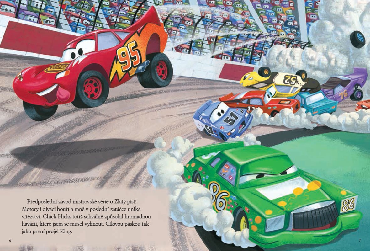 Vydejte se v deseti příbězích na závodnickou dráhu! Společnost vám budou dělat Blesk McQueen s Burák...