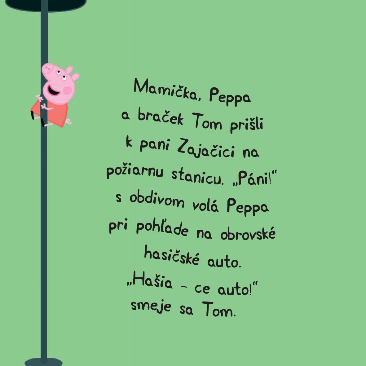 Hooo-rííí! Hooo-rííí! Peppa a Tom sa vezú vo veľkom červenom hasičskom aute. Podarí sa im zachrániť oteckov z futbalového klubu pred nebezpečným ohňom?