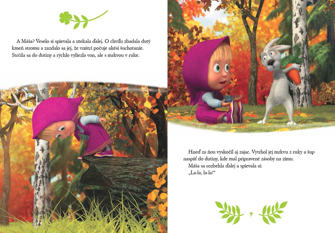 Máša sa skutočne nikdy nenudí! Prečítajte si o tom, ako sa učila korčuľovať, akú kašu uvarila pre medveďa Miška alebo ako si poradila sama medzi vlkmi. Spoločne s ňou môžete brániť medveďovu záhradku pred zajacom zlodejom alebo si zahrať dámu. Príbehy malej nezbednice vás určite nesklamú. Zábava zaručená!