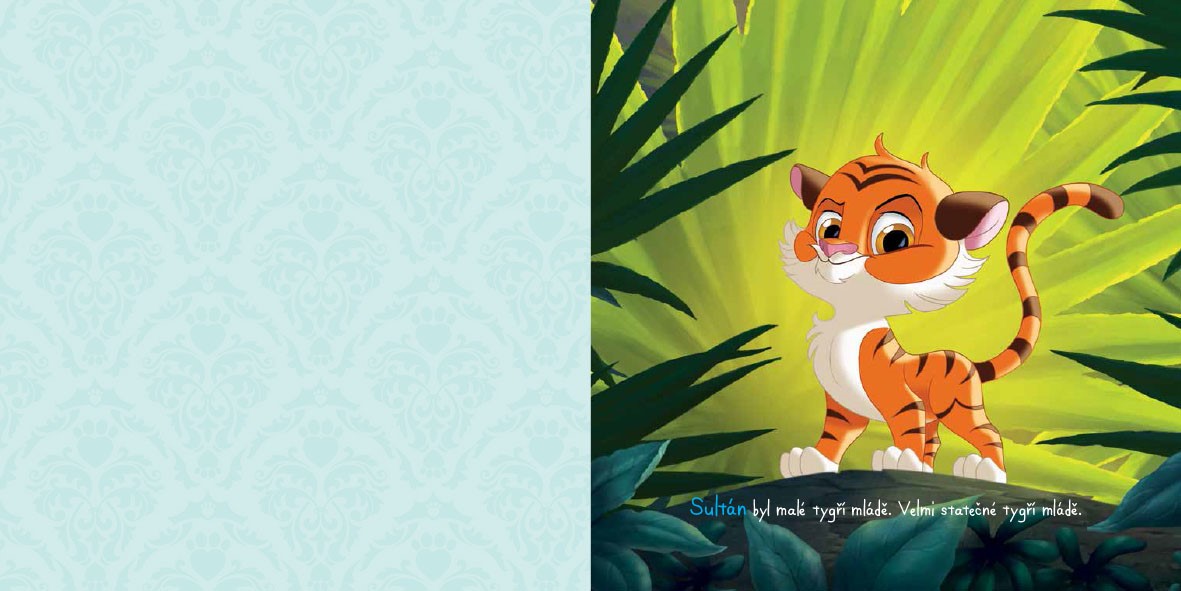 Sultán je sice malý, ale statečný tygřík. Přečti si o otm, jak se stal oddaným ochráncem princezny Jasmíny.