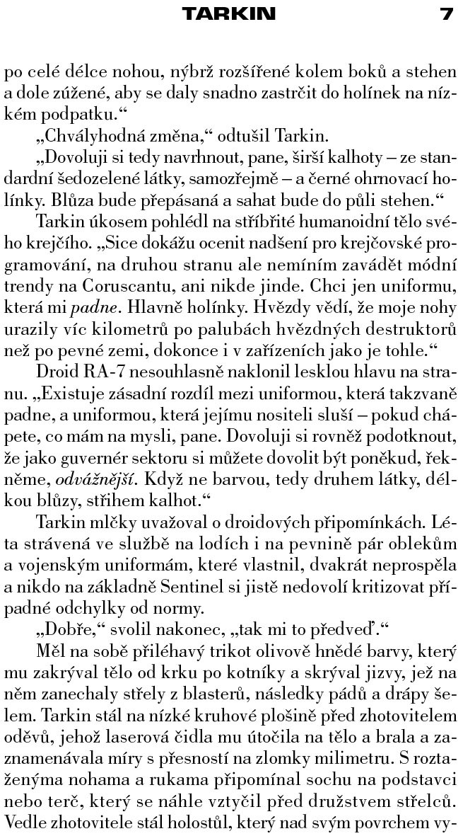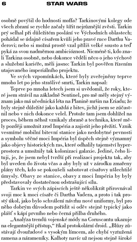 Wilhuff Tarkin je potomek ctihodné a vážené rodiny, předurčený k oslnivé politické kariéře. Coby voják tělem i duší a uznávaný zákonodárce vystupuje jako zastánce Republiky a důvěryhodný spojenec řádu Jedi. Podporován nemilosrdným politikem a sithským lordem, který se jednoho dne stane císařem, stoupá po mocenském žebříčku ještě bezohledněji než jeho pán a fanaticky naplňuje své poslání architekta absolutistické vlády.