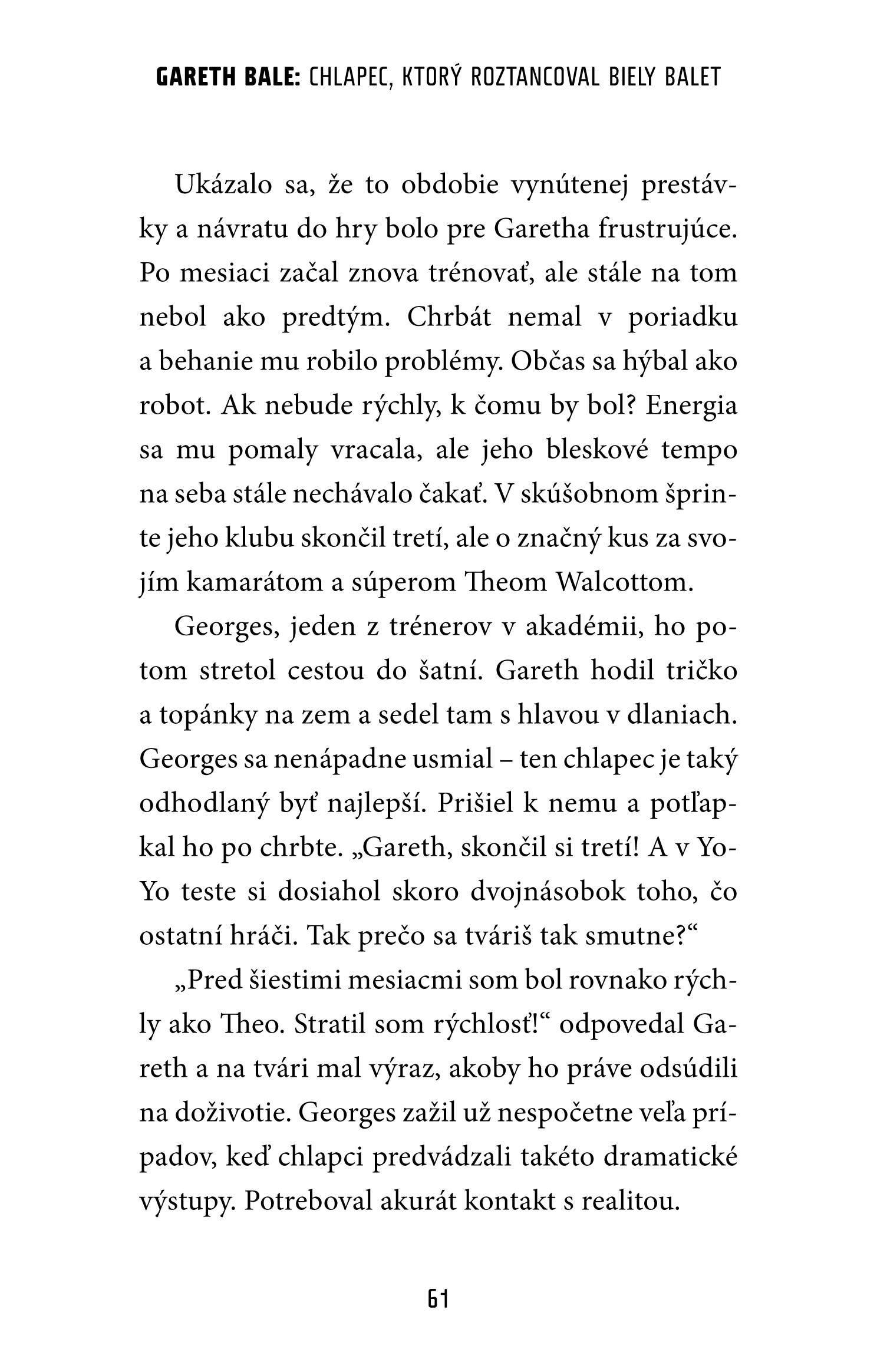 Waleská superhviezda Gareth Bale vyniká svojou rýchlosťou a umením dávať góly z trestných kopov. A v súčasnosti nosí biely dres. Prečítajte si, ako sa k nemu prepracoval, čo všetko mu stálo v ceste a čo musel prekonať. Dozviete sa, že nemal vyšliapanú cestičku, nestačilo iba kopať do lopty ako na dvorcoch Cardiffu vo Walese. Sledujte ho od jeho úplne prvého gólu až po ten prvý za Galácticos.