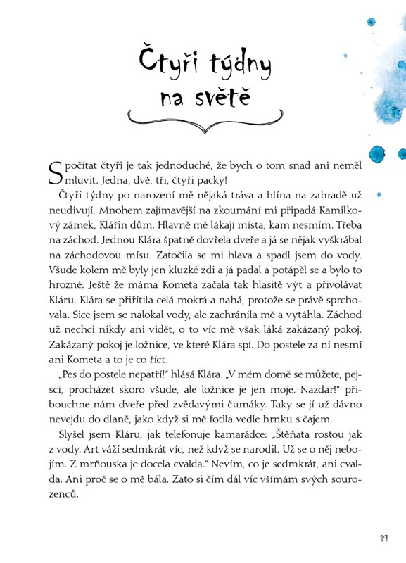 Narodil jsem se v chovné psí stanici jménem Kamilkový dům a teď bydlím u holčičky Saši. Mám se u ní moc dobře a přál bych si, aby pejsek, který bude bydlet u tebe, byl stejně šťastný jako já. Přečti si mé vyprávění a dozvíš se třeba: