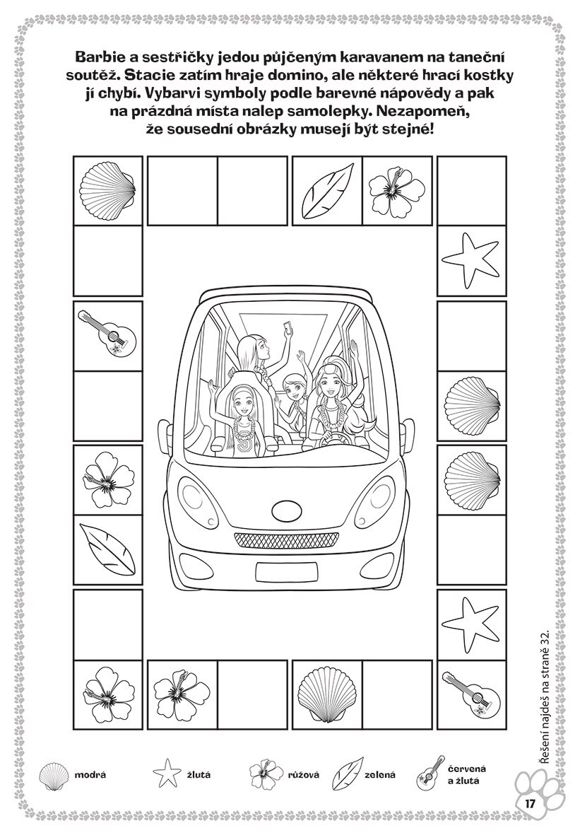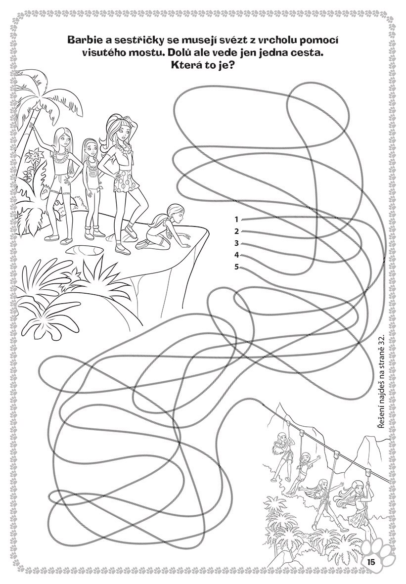 Rozpustilá štěňata, dokonalé prázdniny a… nečekané trampoty! Vstup do světa plného dobrodružství s Barbie a sestřičkami a užij si spoustu zábavy při luštění zapeklitých úkolů, řešení bláznivých hádanek, vybarvování krásných obrázků a další spousty veselých aktivit, řešení bláznivých hádanek, vybarvování krásných obrázků a dalších veselých aktivit!