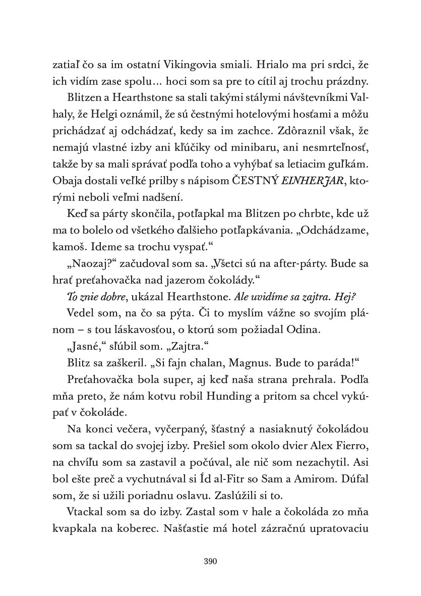 Aj táto časť bola plná akcie a napätia. Nad Magnusom a ostatnými visela reálna hrozba konca sveta a tak sa museli pod tlakom vrhnúť do smrteľného nebezpečenstva. Páčilo sa mi, že dej bol premyslený, že najprv museli podniknúť určité kroky, aby sa vôbec mohli pripraviť na ten záverečný boj. No a keďže, ako som už spomínala, bola celá kniha vďaka Magnusovi vtipná, nikdy som sa nenudila.