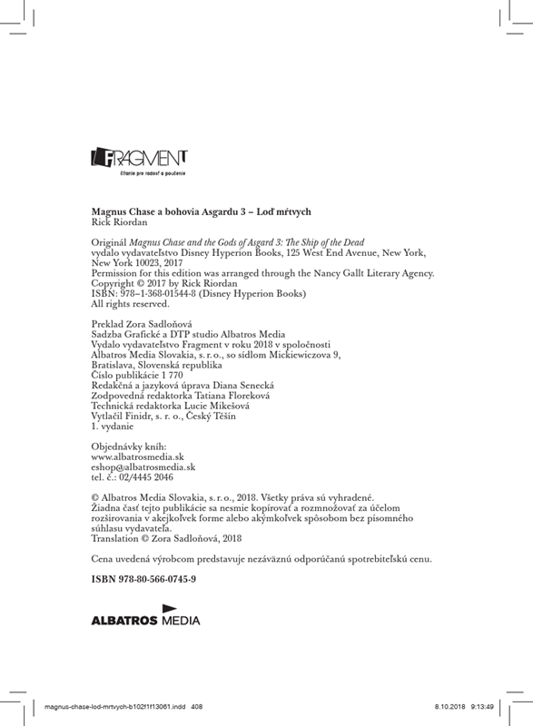 Tak a je to tu, posledná časť zo série Magnus Chase o severských bohoch od Ricka Riordana. Vždy keď končím nejakú z jeho sérií, mám rozporuplné pocity. Väčšinou to síce vyzerá, že je koniec, no Rickove svety sú už také prepletené, že nie je vylúčené, že v ďalšej sérií sa nejaké staré postavy znovu objavia. O tom však až neskôr.