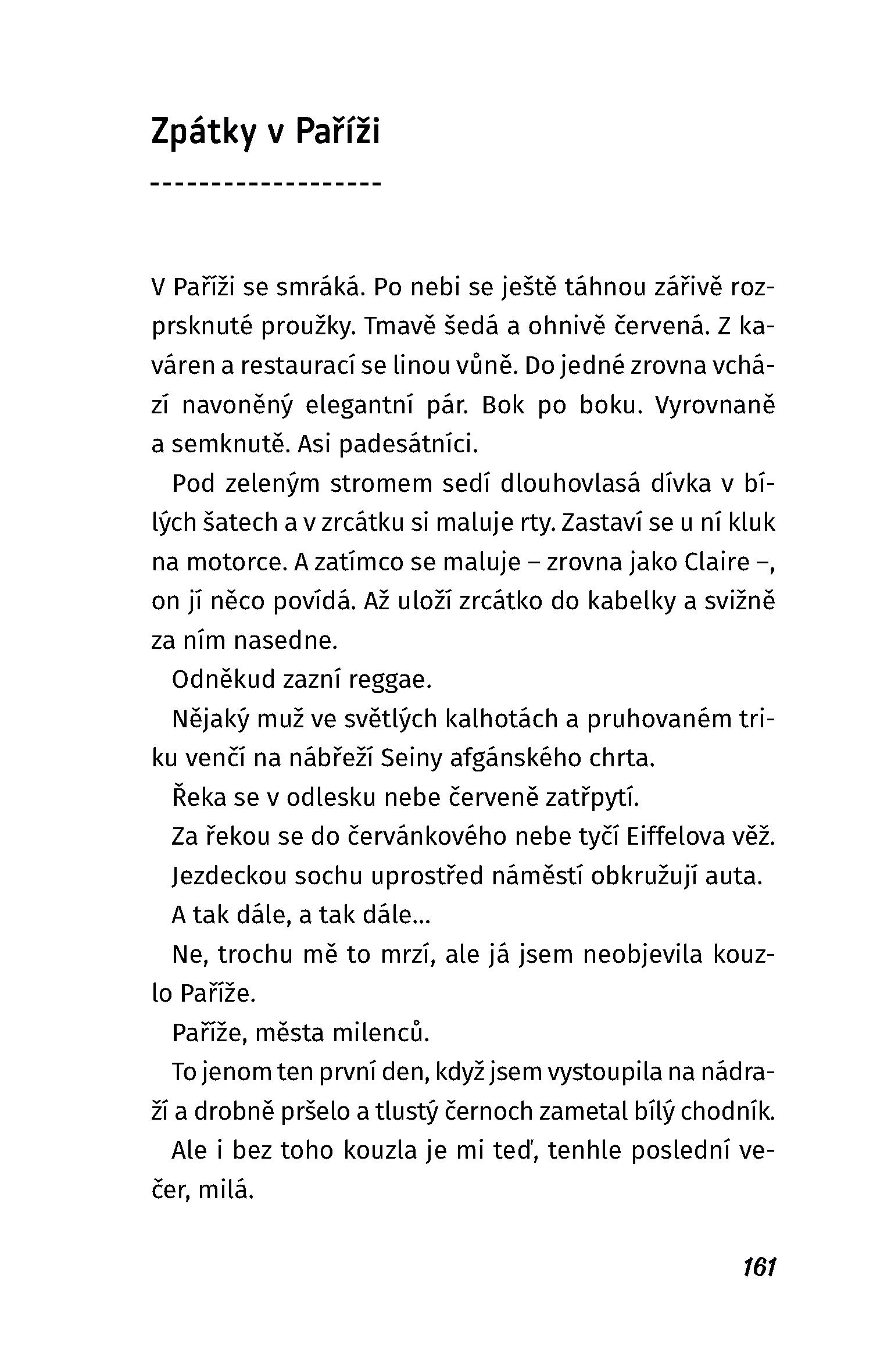 Knihu by som však neodporúčala mladším čítateľom (ako napríklad mojej 13-ročnej sestre), myslím, že je to skôr pre trošku starších. Hlavne kvôli určitým veciam v deji, ktoré nie sú až také ružové ako kabát na obálke. Celkovo sladkosť obálky a názov sú dosť zavádzajúce, netreba očakávať veselú cestu po Francúzsku. Ak však chcete vyskúšať niečo nové a nezvyčajné, toto je zaujímavá zmena.