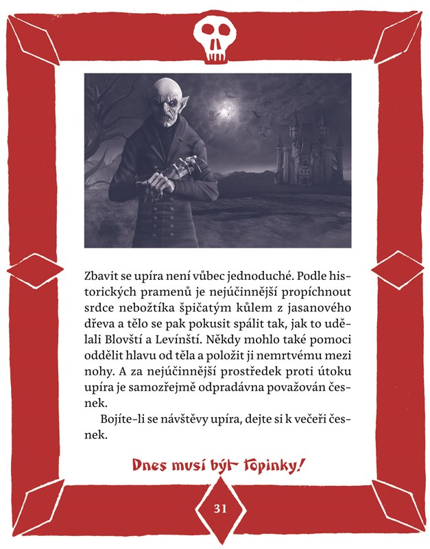 Česko je i strašidelné! Už se bojíte? Máte proč! Na cestě na nejtajemnější místa na vás číhá upír, čert či vodník, což je, jak se dovíte, taky vlastně čert. Ale takový, co se nepropadl pod zem do pekla, ale do rybníka či řeky. A ne všechny strašidelné bytosti jsou spojeny s dávnými časy, takový Pérák, jakýsi český Spiderman, za války dělal pořádek, až „Němčour padal na zadek“. V ministestech na konci kapitol zjistíte, zda už se vyznáte ve Strašidelném Česku. Knížku si vezměte s sebou na výlet či na prázdniny.