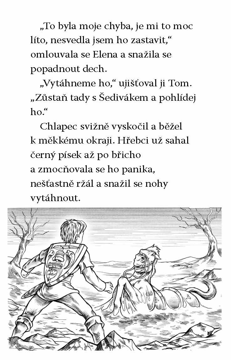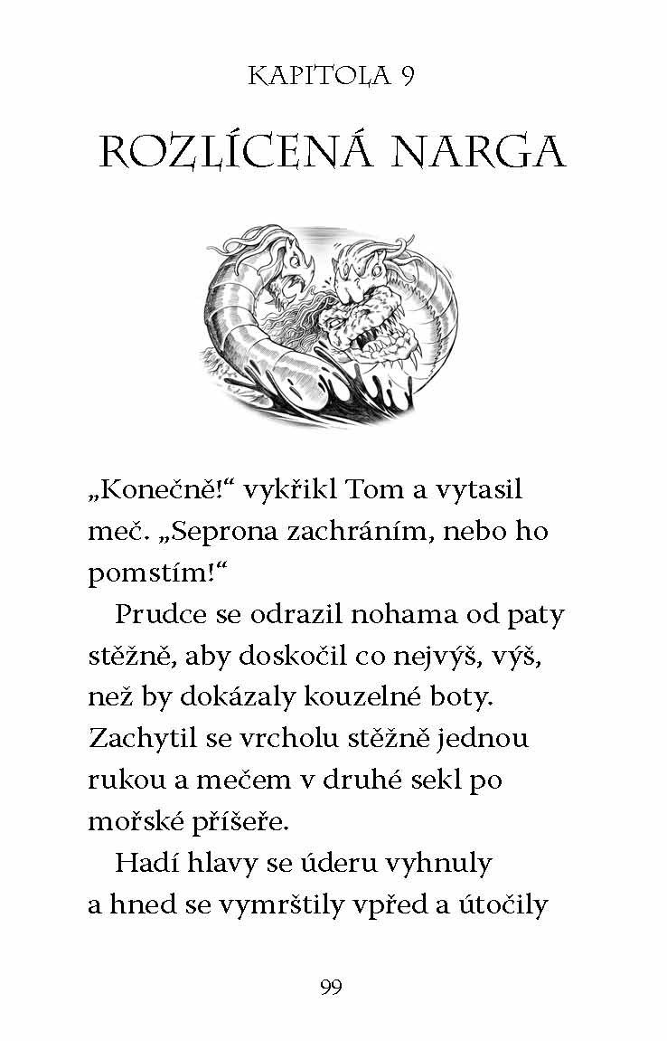 Naši přátelé, Tom, Elena, hřebec Bouřlivák a vlk Šedivák, se vydávají na další záchrannou výpravu. Jejich dobrý ochránce Sepron, mořský plaz, skomírá kdesi ve vodách Černého oceánu, temných a neprůhledných jako inkoust. Zabije ho mořská nestvůra Narga dřív, než se jim ho podaří najít? Rebelové mají za to, že Narga je neporazitelná a z vod se může vynořit nečekaně kdekoli a kdykoli. Dokážou ji Tom s Elenou přelstít a Seprona vysvobodit, nebo zůstanou uvězněni v Říši zla navěky?