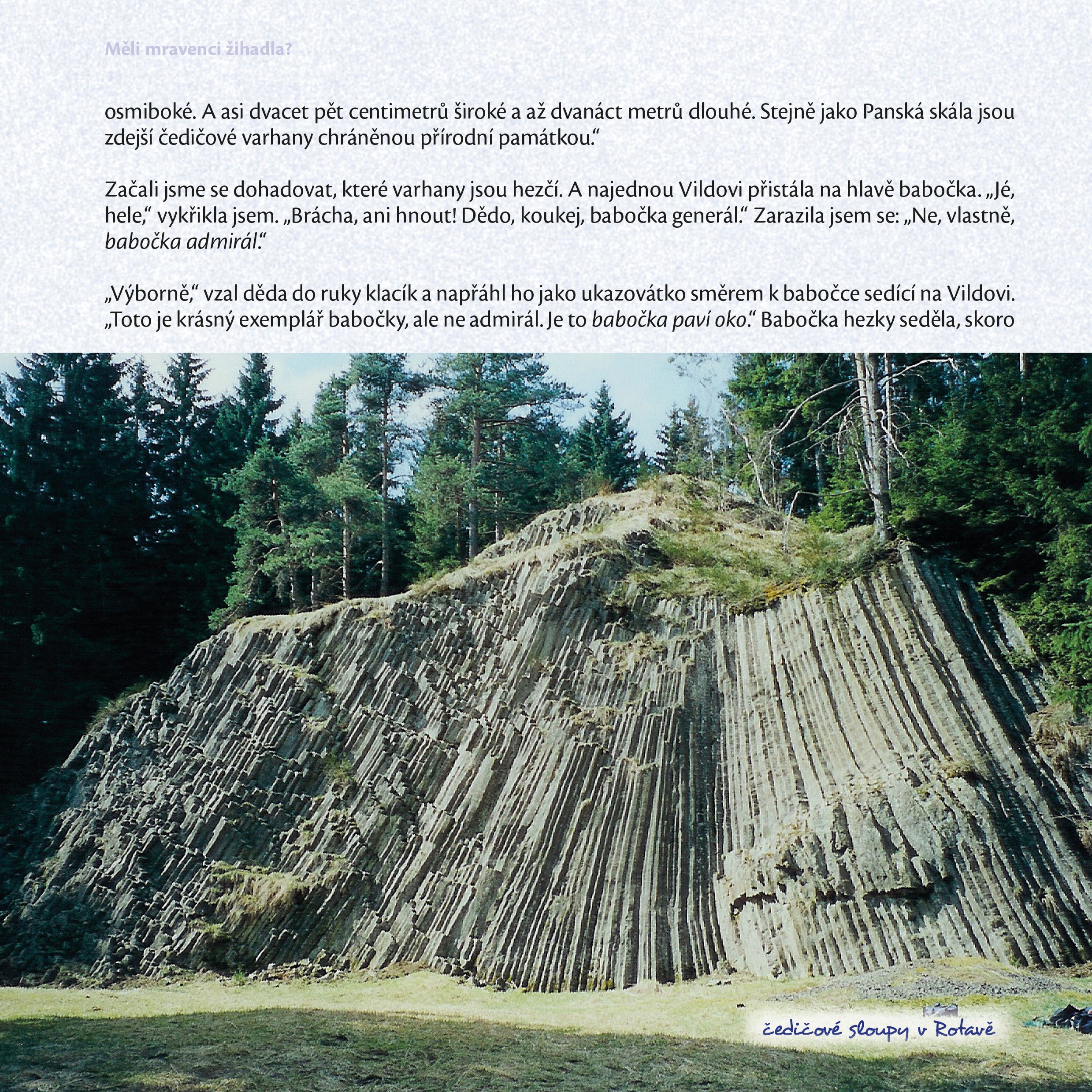 Pokud vás zajímají odpovědi na tyto otázky, začtěte se do vyprávění Vildy a Fíny o jejich výletech za záhadami živé i neživé přírody s dědečkem geologem. Děda geolog sice zlobí babičku schovanými kameny po celém domě (zvláště pod postelí), ale znalosti převeliké má i o živé přírodě. Doprovázet vás bude nejen Vilda a Fína, ale také Čert a Andělka.