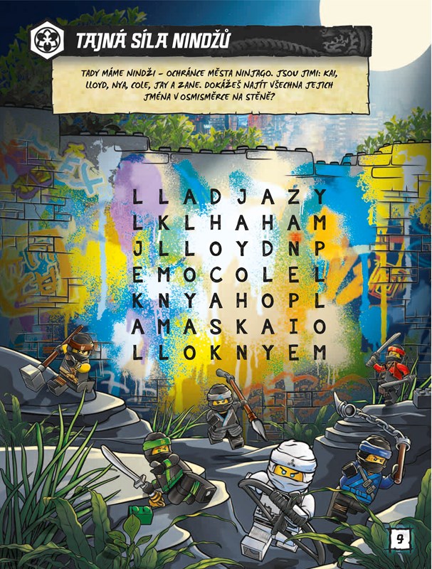 Zlepši své nindžovské schopnosti a nauč se spoustu nových triků, ověř si své znalosti o světě Ninjago a buď svým hrdinům zase o kousek blíž. Hledej bojovníky skryté ve výjevech z jejich tažení, skládej vychytané stroje, najdi cestu labyrintem a zasměj se u povedených komiksů. Užij si zkrátka pořádnou porci nindžovského dobrodružství. NINJA, GO!