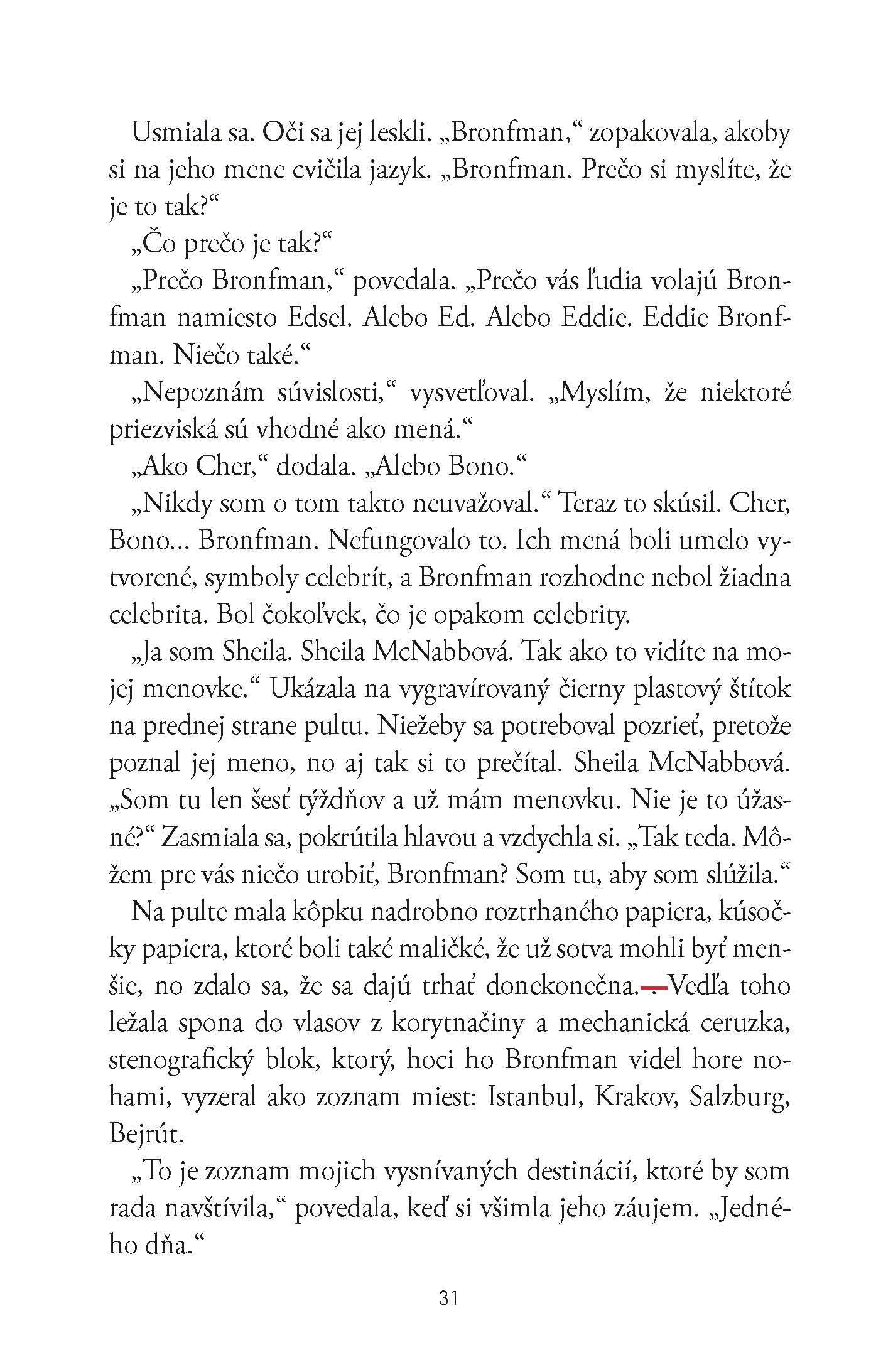 Už po prvých stranách som sa tešila, ako Edsel pomocou svojho „áno“ životu nájde spriaznenú dušu, užije si krásnu dovolenku v príjemnej spoločnosti a vystúpi zo svojho stereotypu. Edsel bol pre mňa človekom, ktorému by som aj v reálnom živote úprimne priala pekný vzťah. Začať si hľadať ženu po tom, čo vám oznámia, že ste vyhrali pobyt na Floride, je pomerne dosť čudné, a práve preto ma táto situácia zaujala a čakala som, ako sa vyvinie. Žiaľ, jediné, čo ma v knihe prekvapilo, bol fakt, že žiadna Carla, operátorka, ktorá Edselovi povedala správu o výhre, v agentúre nepracuje. Bola som veľmi rada, že autor nenapísal viac o tom, prečo táto žena vo firme nikdy nepracovala, ako to, že zavolala práve Edselovi a podobne. Táto informácia by mi vôbec nechýbala a bola príjemným spestrením a tajomstvom, po ktorom som nemala chuť pátrať. Aj keď sa kniha číta pomerne rýchlo a nájdeme v nej aj úsmevné situácie, myslím si, že jej chýbalo rozvinutie Edselovho áno životu, áno láske.