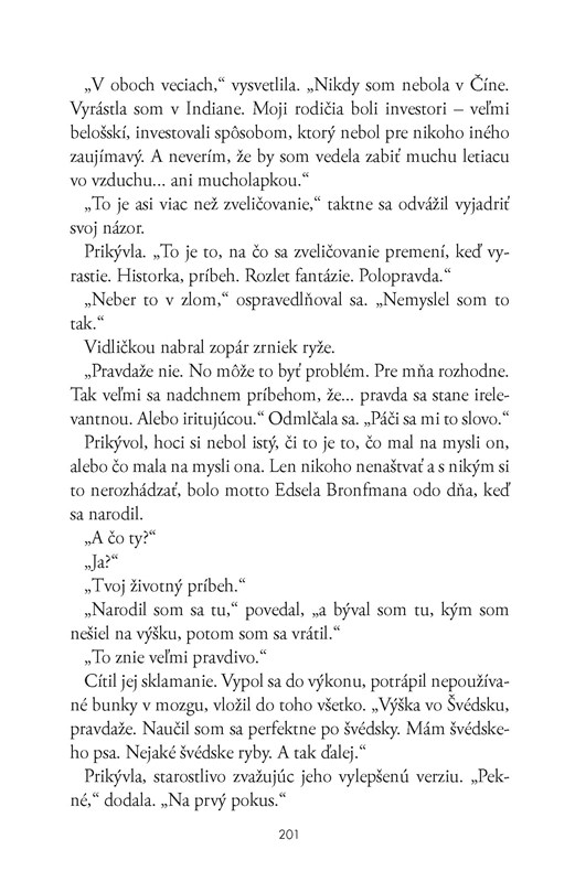 Kniha napriek pomerne nudnému deju otvára mnohé otázky. V každej knihe, ktorú prečítam, sa snažím nájsť čosi pozitívne, úvahové, niečo, čo môjmu životu, nielen tomu knižnému, môže priniesť nový rozmer bytia. Preto by som sa na záver chcela opýtať aj vás, milí naši čitatelia, oplatí sa žiť v stereotype, ktorý nám síce ponúka istý pocit bezpečia, alebo zariskujeme a prežijeme svoje vlastné neobyčajné dobrodružstvá?