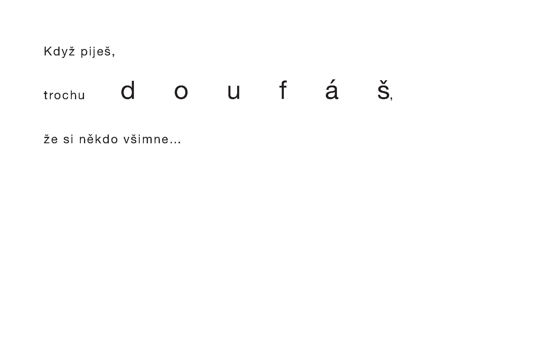 Když piješ… stávaj se ti různý věci. Někdy jejich sled vnímáš jen jako rychlý prolistování stránkama, jako sekvence několika za sebou jdoucích obrázků, ze kterejch se ti složí celej příběh. Někdy se zase zastavíš u jedný scény a přemýšlíš, jestli je čas obrátit list. Když piješ, bývá to někdy hořký, někdy něžný, někdy úsměvný, taky upřímný, krutý, nečekaný, plánovaný, dobrý i zlý.