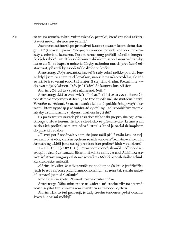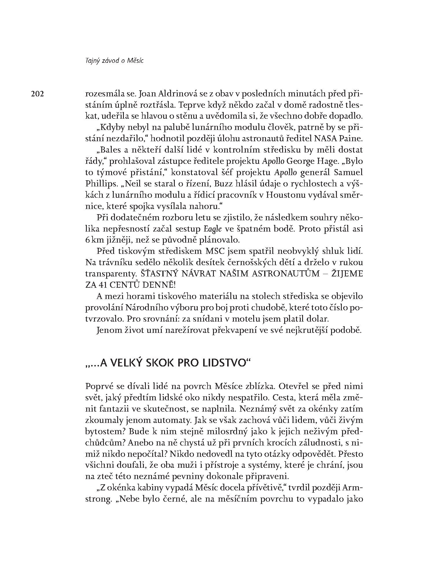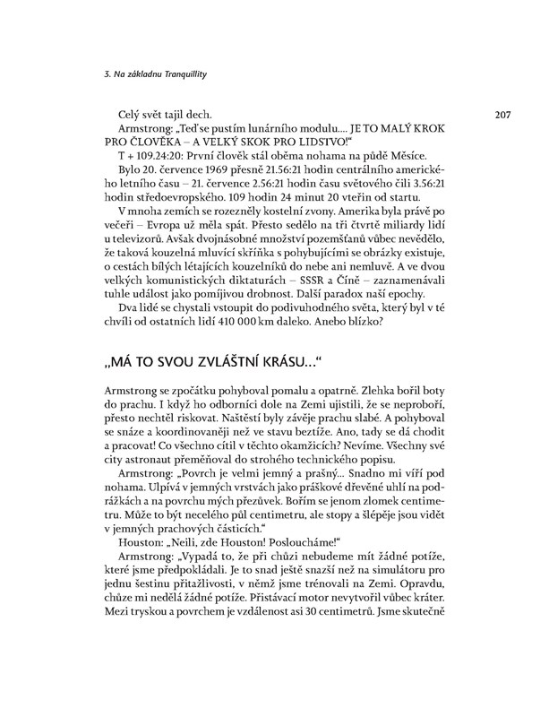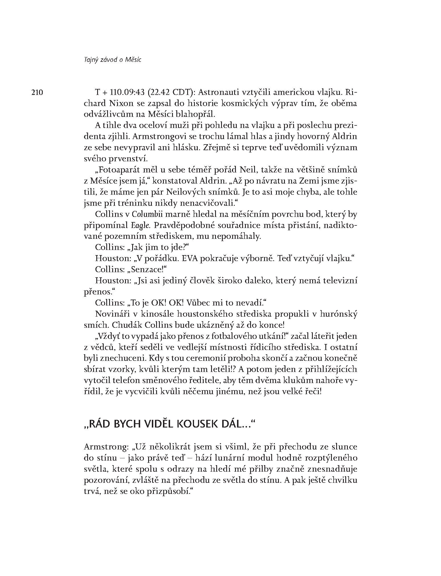 Také kniha Karla Pacnera, pojednávající o tom, co se ve světě odehrálo v souvislosti s přistáním lidí na Měsíci, je toho důkazem. Autor především v mnoha směrech nově vykresluje dění ve Spojených státech a v tehdejším Sovětském svazu – dvou táborech, které spolu svedly nevyhlášený závod o to, kdo bude první na Měsíci. Při analýze tehdejšího stavu a plánů kosmických výzkumů obou zemí čerpal z nedávno odtajněných materiálů a poutavě líčí ve všech souvislostech události včetně náhlých obratů tajného souboje vědy a techniky dvou světových velmocí, který prohráli Sověti.