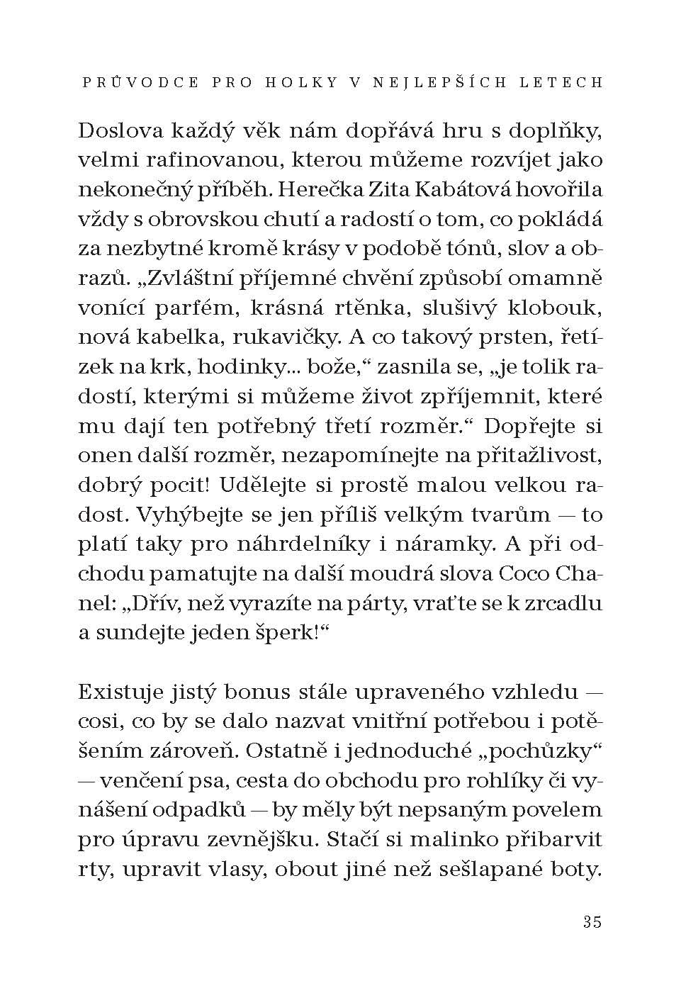 Fenomén tzv. časného stáří není u nás pro ženy „v nejlepším věku“ vůbec zpracován. Jako by se čas dámského věku magicky zastavil u číslice 40+. Na český knižní trh proto přicházejí se svou novinkou spoluautorky a dlouholeté profesní i životní přítelkyně Marie Formáčková a Michaela Zindelová. V několika kapitolách se zabývají např. otázkou, jak naplnit nový, svobodnější čas, nevyhýbají se psychologickému vypořádání se s úředním termínem „starobní čas“, nejrůznějším tipům na aktivity nebo zaměstnání, láskám ani sexu. Kapitola věnovaná image, oblékání a kosmetice je uvozená mottem Heleny Rubinsteinové: Stárněte oslnivě! Knížka otevřeně hovoří také o tabuizovaných tématech nemoci a smrti. Jak být sama, mít doma kočku nebo psa, jak zvládat problémy v rodině i mimo ni? Nekonečný počet malých životních příběhů, nápadů a tipů, jak se na nové životní období připravit. Nezapomeňte, že záleží pouze na vás, zda chválu herce a spisovatele Miroslava Horníčka pro všechno „poprvé“ změníte na horování pro vše, co by mohlo být jednou i „naposled“.