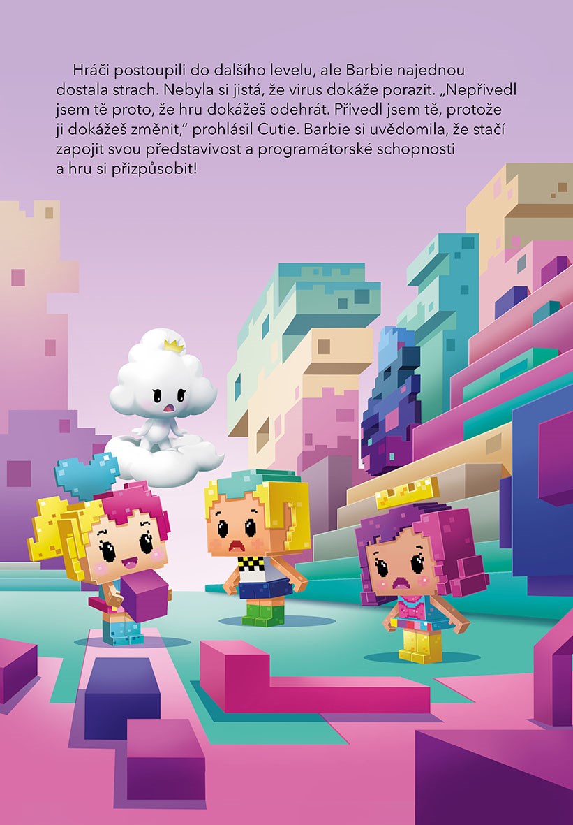V novém akčním dobrodružství ze světa digitálních videoher se Barbie jako počítačová programátorka ocitá přímo uprostřed videohry, kterou napadl nebezpečný virus. Hrozí, že virus zničí všechny úrovně, včetně hráčů, kteří ve hře žijí! Zachrání Barbie hru? Přečti si příběh, vybarvuj obrázky, nalepuj své oblíbené hrdiny!